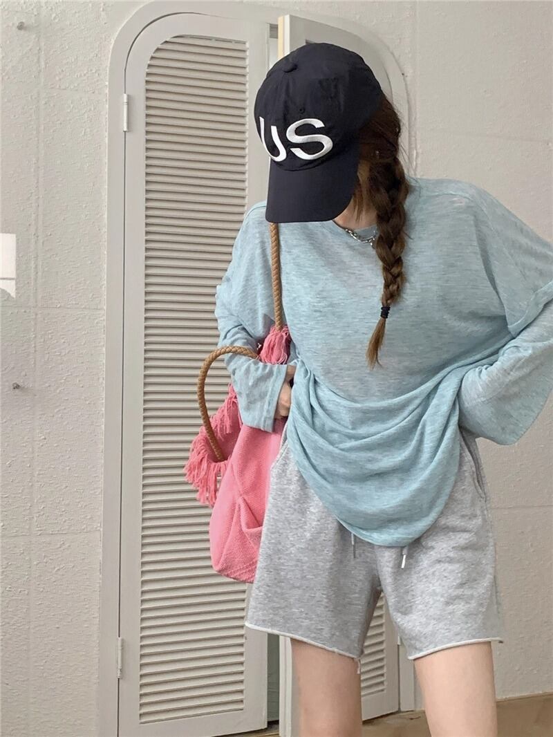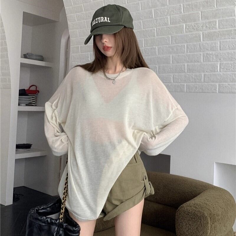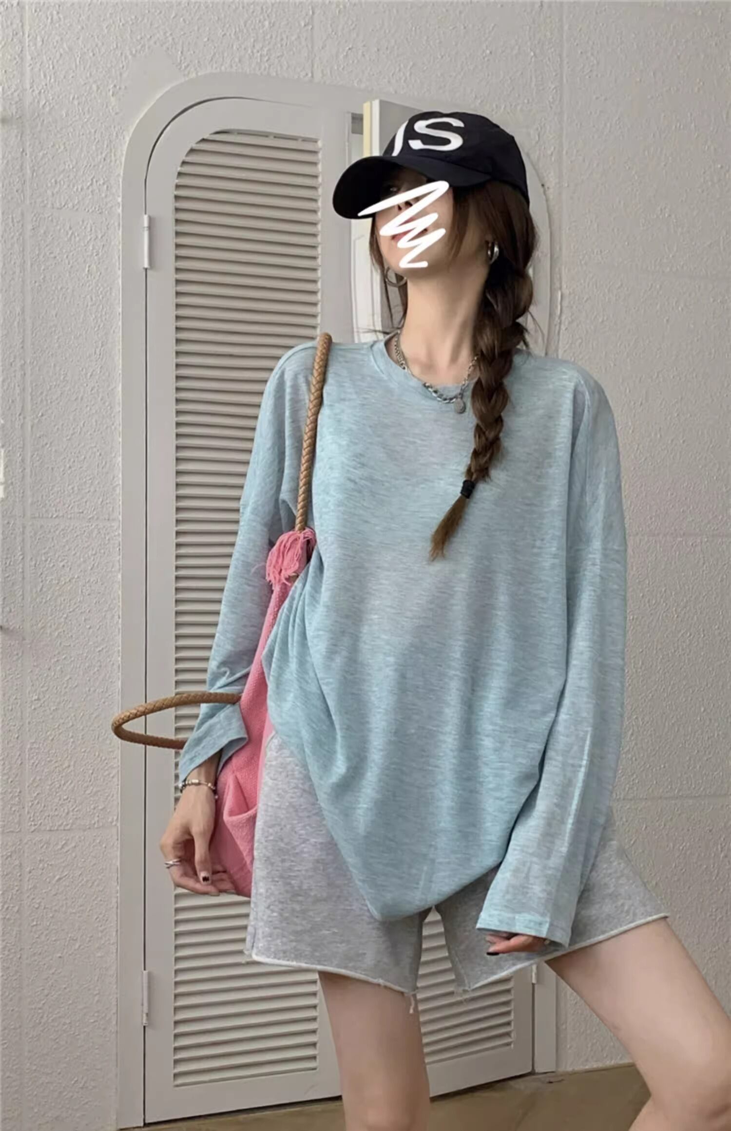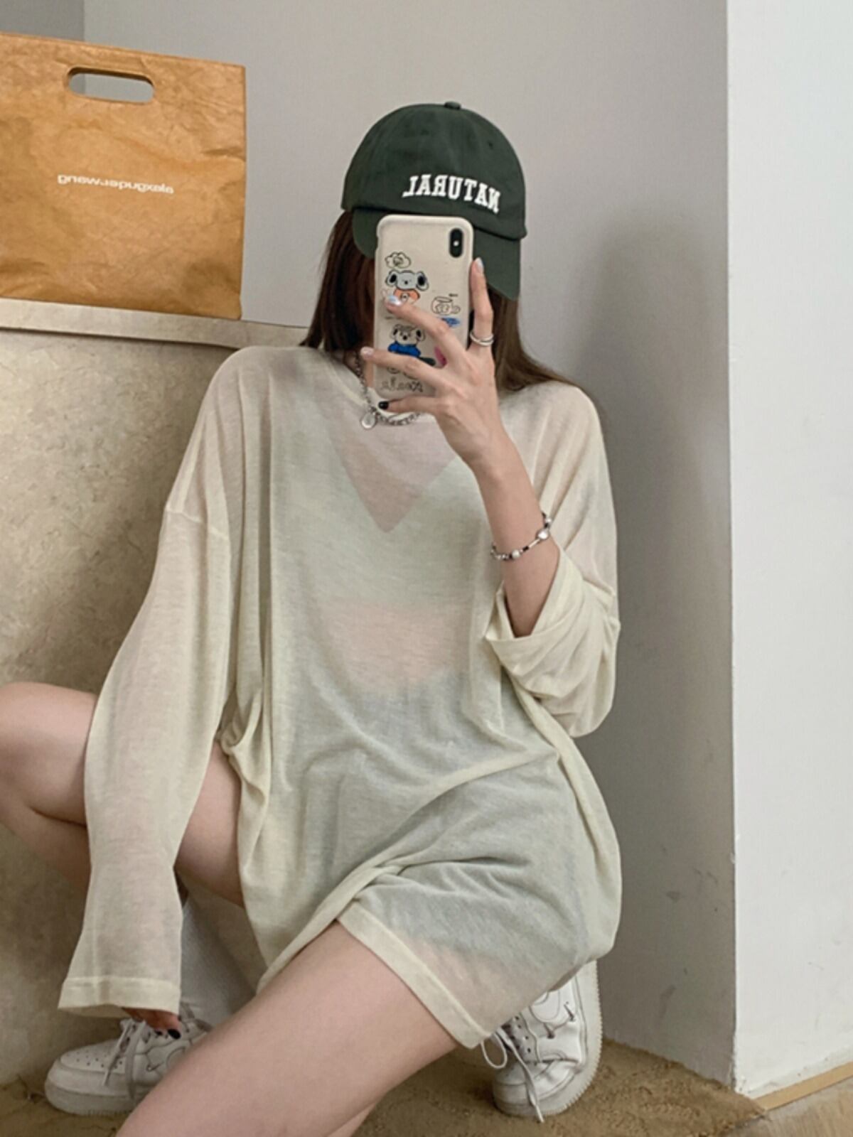 レディース トップス ロンT 長袖 ラウンドネック 薄手 日焼け対策 ミディアム丈 かわいい 大人可愛い きれいめ シンプル カジュアル 上品 おしゃれ かっこいい こなれ感 ラフ メンズライク ボーイッシュ スポーティー ルーズ 個性的 クール アクティブ ナチュラル 無地 春 夏 デート お出かけ リゾート 旅行 海 プール ビーチ 公園 休日 ショッピング ライブ フェス コーデ 体型カバー 普段使い モテ S M L XL 2XL ゆったり ゆる ホワイト ブルー ベーシックカラー 大人カラー | SPARKJOY レディースファッション