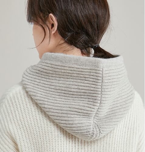 フード付きデザインで、首元まで暖かく包み込み、防寒性とおしゃれを両立します。