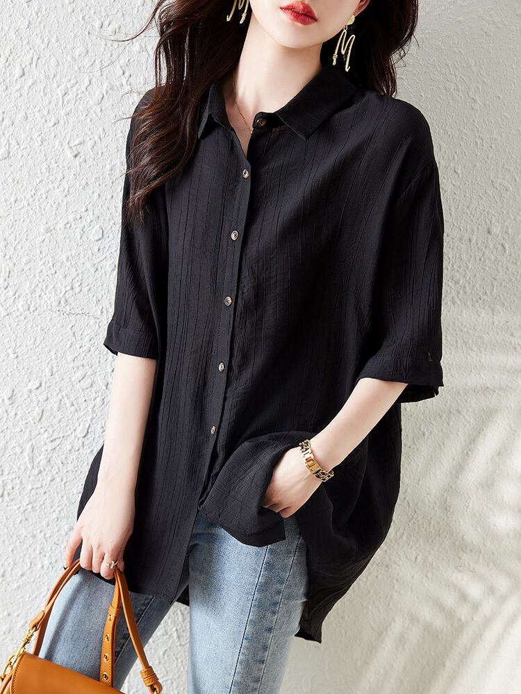 トップス シャツ 半袖 襟付き 前開き ボタン ミディアム丈 シースルー 透け感 薄手 かわいい 可愛い 大人可愛い きれいめ シンプル 上品 レトロ おしゃれ かっこいい カジュアル レトロ こなれ感 個性的 主役級 存在感 抜け感 春 夏 ベーシック ナチュラル メンズライク 無地 女性用 レディース ママ OL 通勤 オフィス 学生 通学 デート お出かけ お泊まり 女子会 旅行 休日 カフェ ショッピング コンパ 普段使い デイリー 着回し 重ね着 L XL 2XL 3XL 4XL 5XL | SPARKJOY レディースファッション