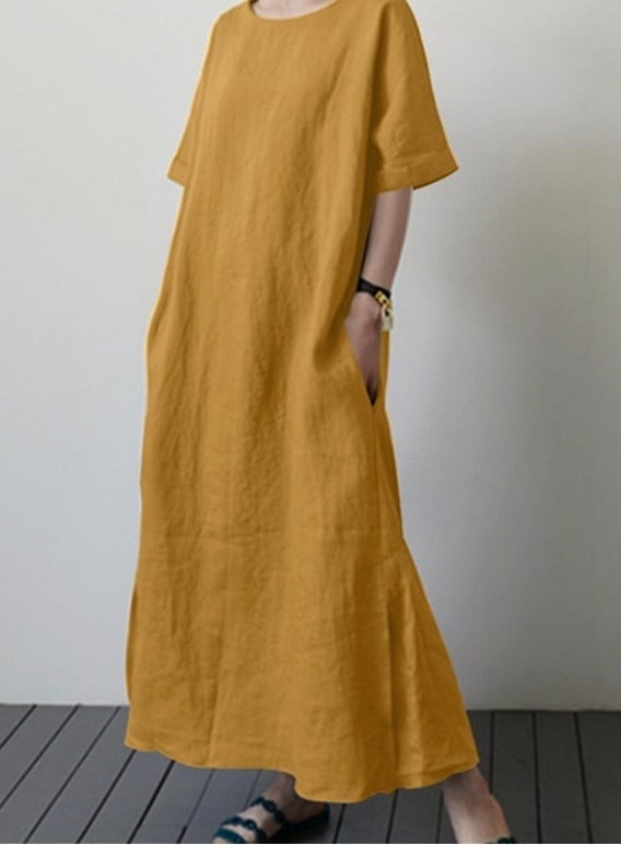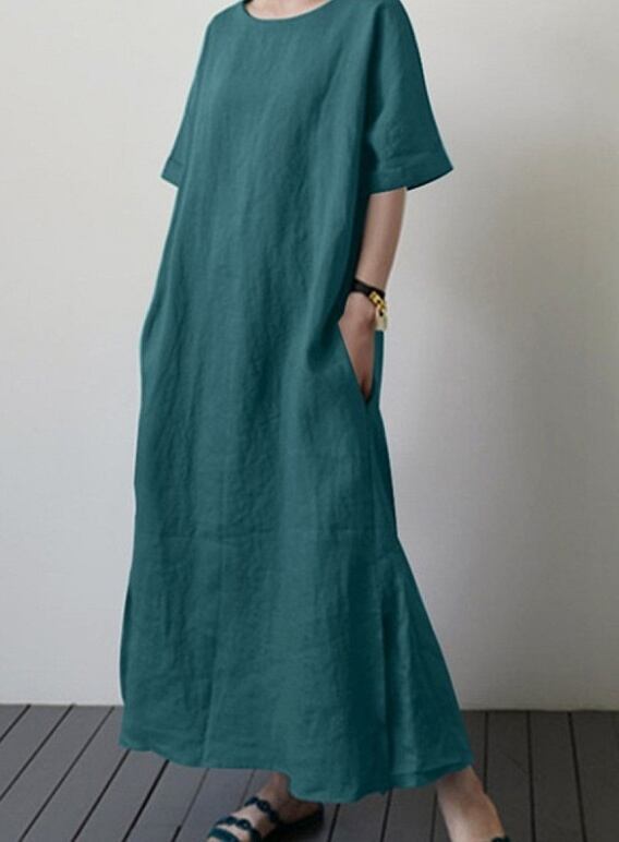 レディース ワンピース ロング マキシ 5分袖 ラウンドネック 裾ワイド かわいい 大人可愛い きれいめ シンプル カジュアル おしゃれ こなれ感 ラフ キュート 都会的 アメリカン ナチュラル 無地 春 夏 デート お出かけ リゾート 旅行 レストラン 公園 女子会 休日 バカンス ホテル ガーデン ショッピング お花見 合コン カフェ 韓国 コーデ 楽ちん 体型カバー モテ 清楚 トレンド 流行 インスタ映え 定番 S M L XL 2XL 3XL 大きいサイズ ゆったり ブラック イエロー グリーン | SPARKJOY レディースファッション