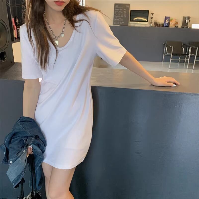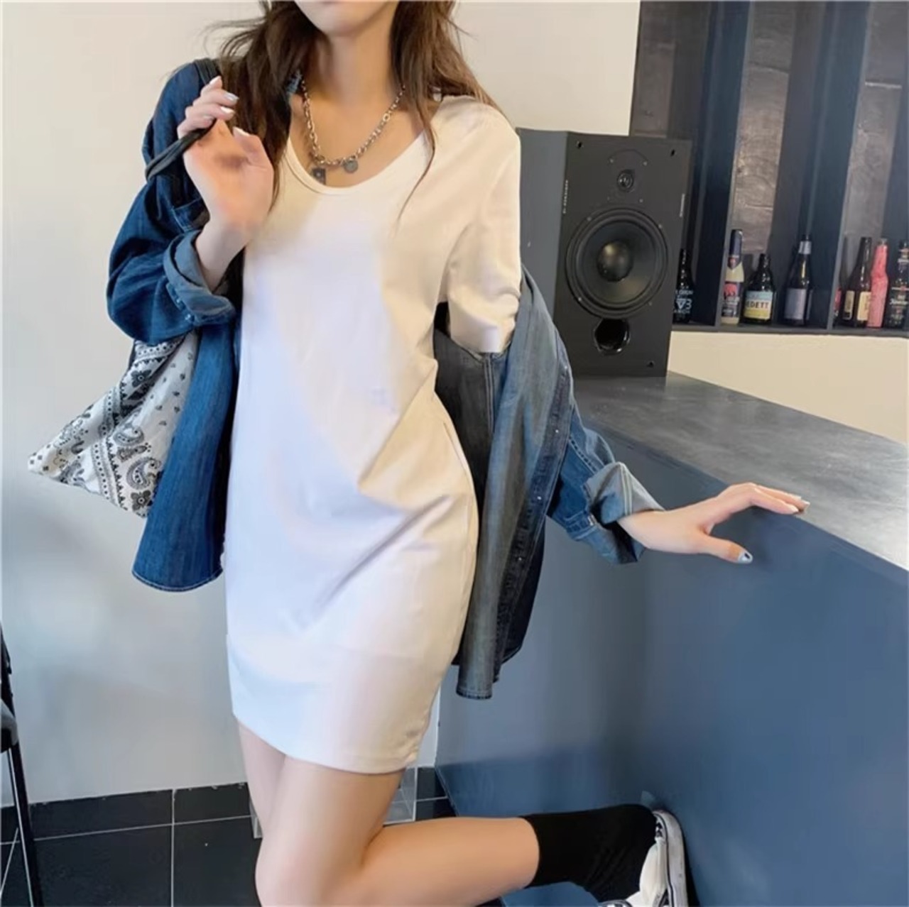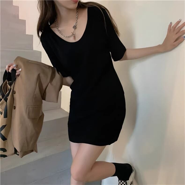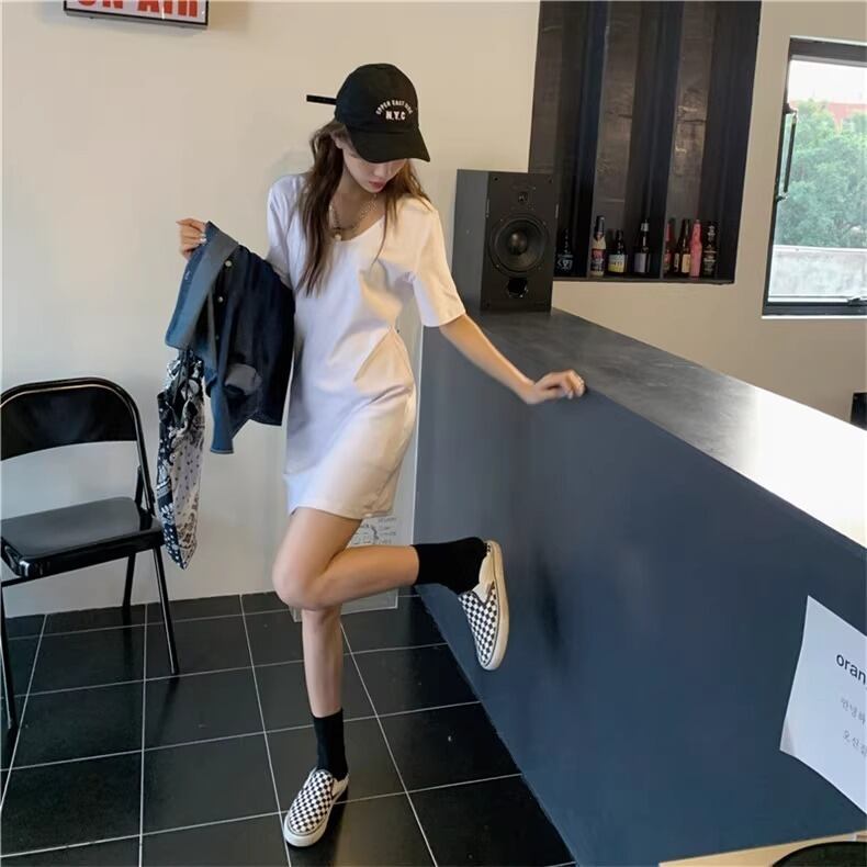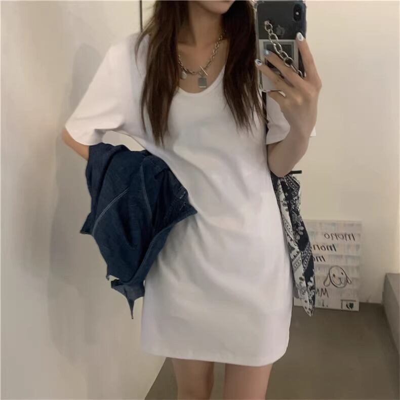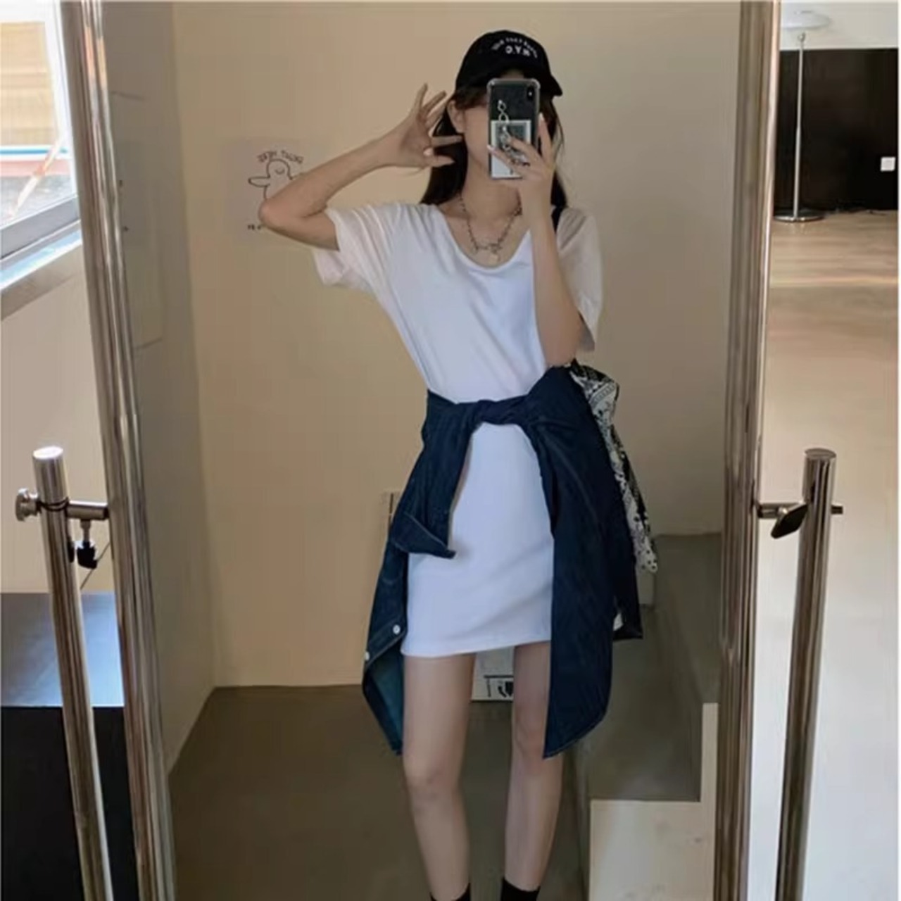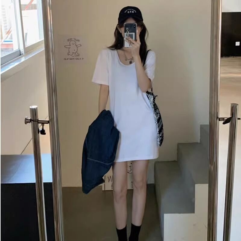 レディース ワンピース ショート 半袖 Uネック かわいい 大人可愛い きれいめ シンプル カジュアル 上品 おしゃれ かっこいい レトロ エキゾチック こなれ感 ラフ スポーティー 個性的 クール モード系 エレガント モダン 抜け感 かっちり ベーシック ナチュラル 無地 夏 デート お出かけ 旅行 休日 ホテル ショッピング カフェ モノトーン コーデ 楽ちん 体型カバー 美脚 脚長 普段使い モテ 清楚 S M L XL ゆったり ゆる 白 ホワイト 黒 ブラック ベーシックカラー 大人カラー | SPARKJOY レディースファッション