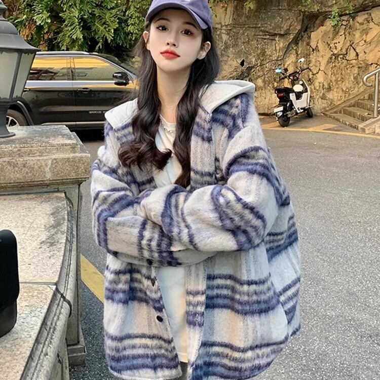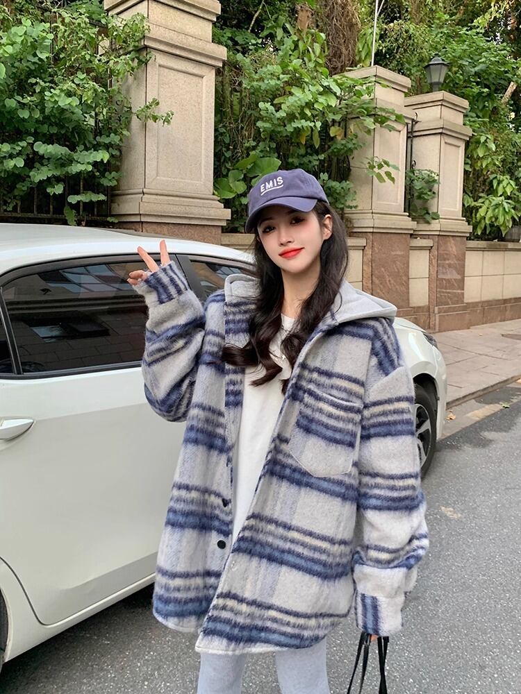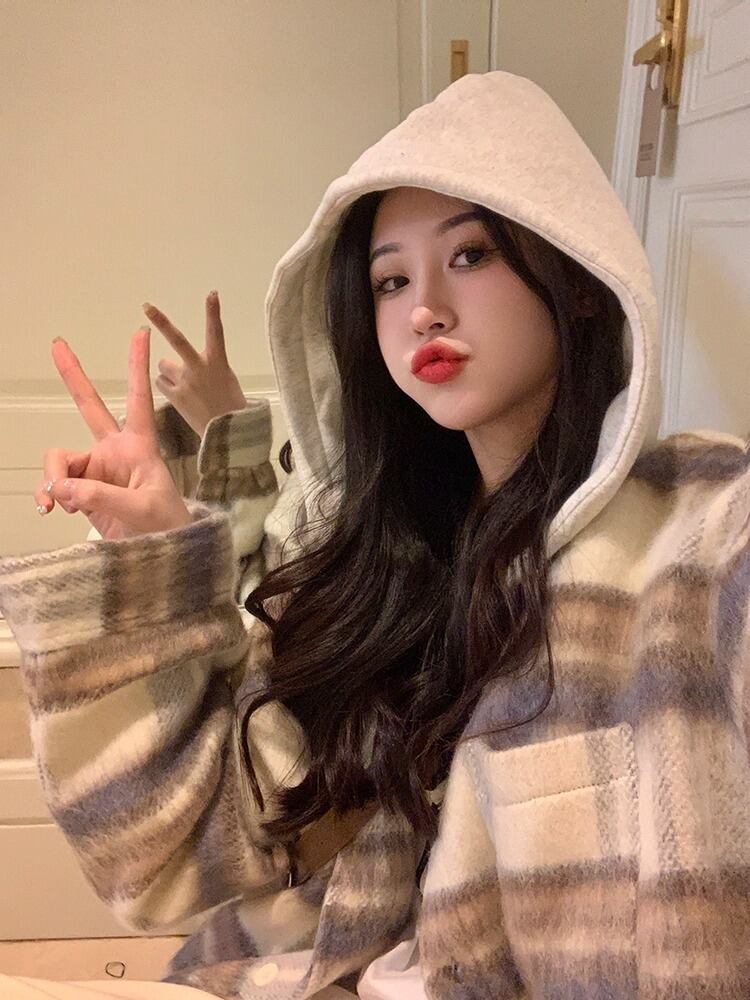 レディース ジャケット カーディガン アウター 長袖 フード ボタン 厚手 かわいい 大人可愛い きれいめ シンプル カジュアル 上品 おしゃれ かっこいい レトロ こなれ感 ラフ メンズライク ボーイッシュ スポーティー 個性的 クール 抜け感 アメリカン アクティブ ナチュラル チェック 秋 冬 デート お出かけ 旅行 公園 休日 ショッピング カフェ コーデ 楽ちん 暖かい 防寒 体型カバー 普段使い モテ S M L XL 2XL ゆったり ゆる グレー アプリコット ベーシックカラー 大人カラー | SPARKJOY レディースファッション