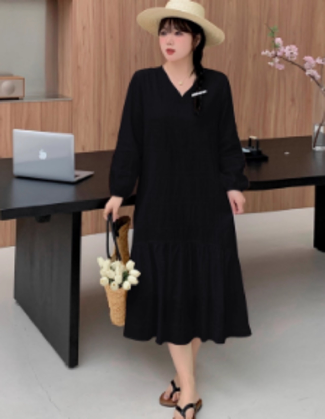 シンプルでありながら、大人可愛い印象を与え、カジュアルからフォーマルな場面まで幅広く活躍します。こなれたスタイルを演出することができ、さまざまなシーンにぴったりの一着です。