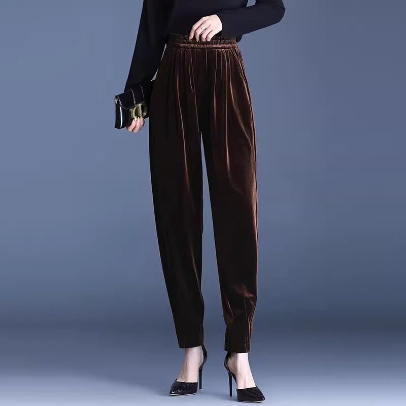 エレガントでありながら、リラックスした雰囲気を演出するレディースロングパンツ!ハイウエストのデザインとスリムなシルエットは、体型カバーをしつつもスマートな印象を与えます。ベルベットの中厚手素材は、秋冬の季節にぴったりの暖かさを提供し、どんなシーンでも上品に決まります。