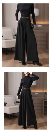 シンプルで洗練された大人の女性のための、レディースロングパンツのご紹介です!このボトムスは、フォーマルなシーンからカジュアルなお出かけまで幅広く対応できる万能アイテムです。ハイウエストと裾ワイドのデザインが、スタイルアップを実現し、上品な印象を与えます。中厚手ウール素材で、秋冬の季節でも暖かく快適にお過ごしいただけます。