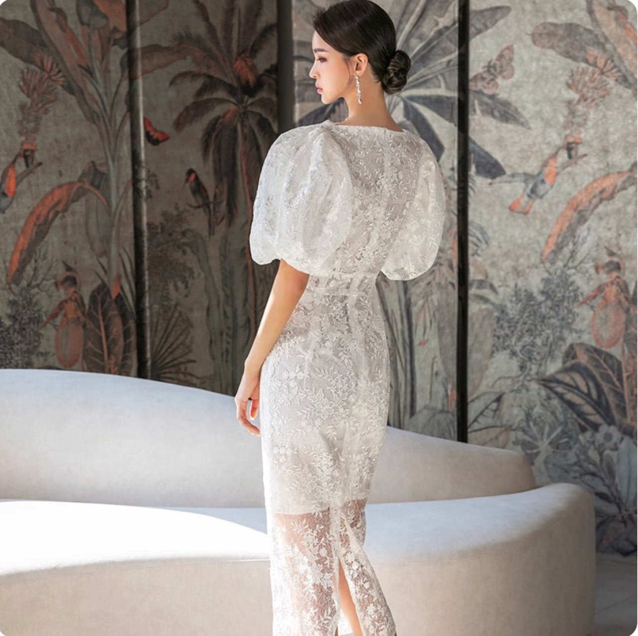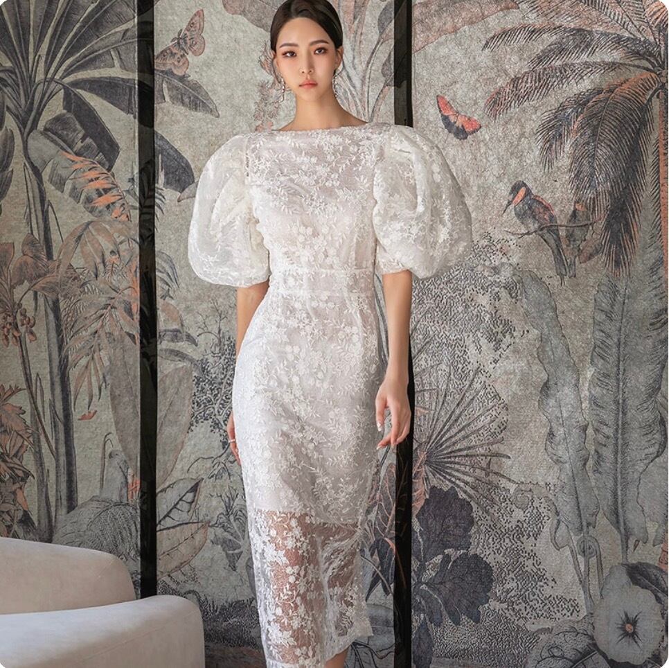 レディース ワンピース デート レース ワンピドレス ロング ロング丈 袖あり 半袖 フレアスリーブ ホルンスリーブ 萌袖 Vネック 襟なし タイト 細身 Iライン 切り替えデザイン 透け感 伸縮性 薄手 かわいい 大人可愛い きれいめ シンプル カジュアル 上品 おしゃれ お洒落 レトロ 大人女子 こなれ感 ラフ ラブリー キュート ガーリー 個性的 クール モード系 エレガント モダン 主役級 存在感 抜け感 無地 レディース デート お出かけ 女子会 休日 コーデ スタイル モテ | SPARKJOY レディースファッション