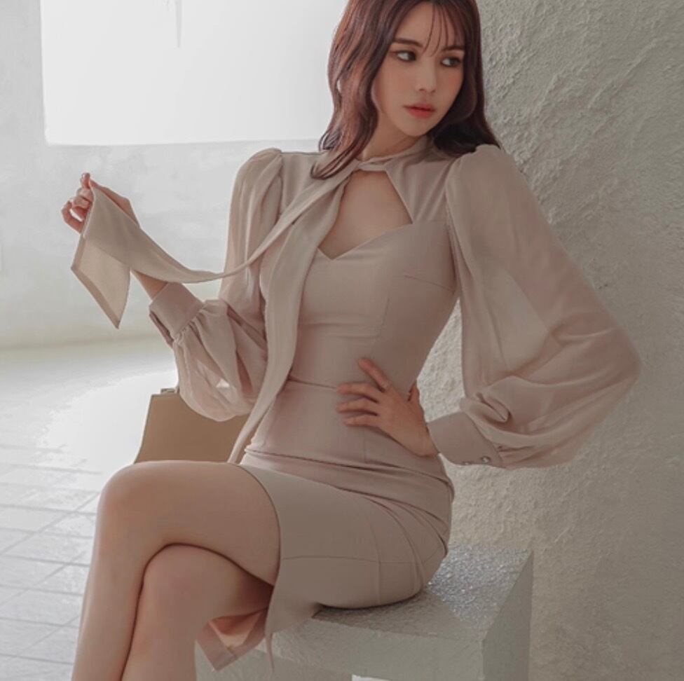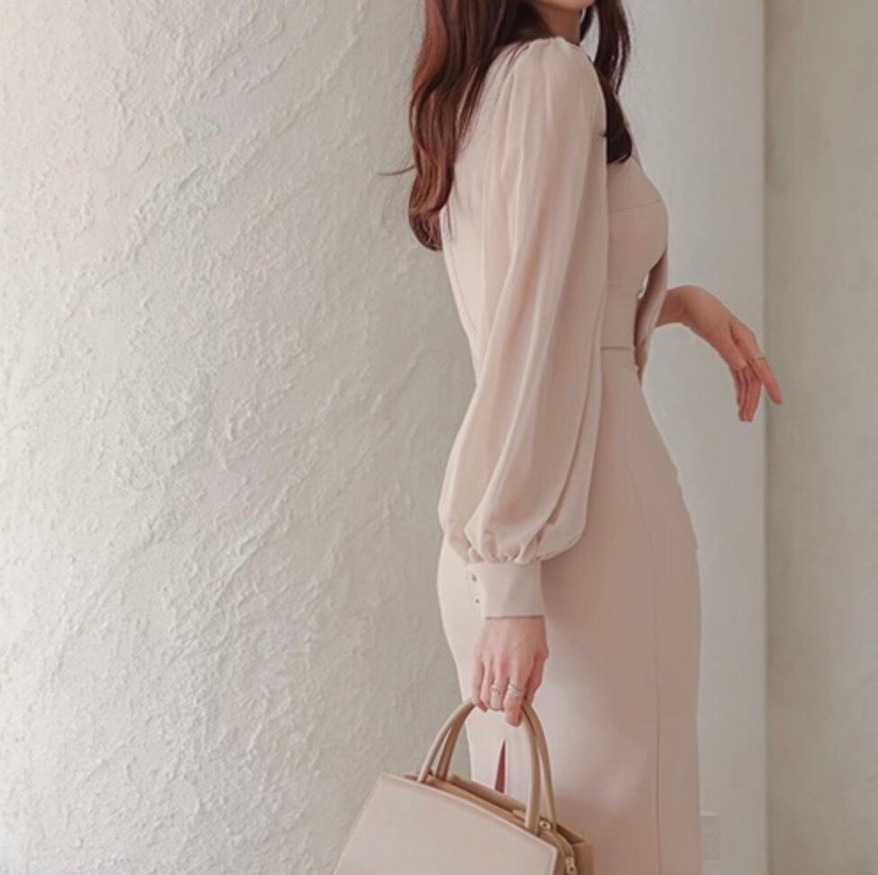 レディース ワンピース デート ワンピドレス ショート ショート丈 膝丈 ひざ丈 袖あり 長袖 ボリューム袖 フレアスリーブ ホルンスリーブ 萌袖 襟なし スリム タイト 細身 切り替えデザイン スマート ウエストマーク 透け感 伸縮性 かわいい 大人可愛い きれいめ シンプル カジュアル 上品 おしゃれ お洒落 レトロ 大人女子 こなれ感 ラフ ラブリー キュート ガーリー 個性的 クール モード系 エレガント モダン 主役級 存在感 抜け感 無地 レディース デート お出かけ 女子会 休日 | SPARKJOY レディースファッション
