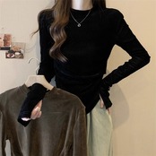 レディース トップス 長袖 ラウンドネック スリム かわいい 大人可愛い きれいめ シンプル カジュアル 上品 おしゃれ かっこいい レトロ こなれ感 ラフ ボーイッシュ ガーリー 個性的 クール モード系 エレガント モダン 抜け感 ラブリー ベーシック アクティブ ナチュラル 無地 秋 冬 デート お出かけ 旅行 公園 女子会 休日 ショッピング カフェ モノトーン コーデ 楽ちん 暖かい 普段使い 着回し モテ 清楚 S M L XL 2XL ブラック カーキ ベーシックカラー 大人カラー 秋カラー | SPARKJOY レディースファッション