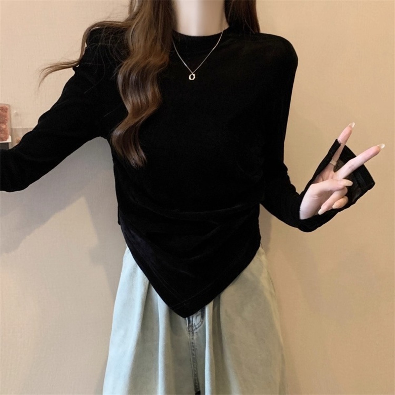 シンプルながらも大人可愛い魅力満載のレディース長袖トップス!ラウンドネックのデザインが顔周りをすっきり見せ、どんなシーンでも合わせやすい一枚です。スリムなシルエットは、女性らしいラインを演出しつつも「こなれ感」を大切にしたアイテム。普段使いはもちろん、カフェや女子会などのお出かけやデートにもぴったりな、おしゃれでクールなデザインです。