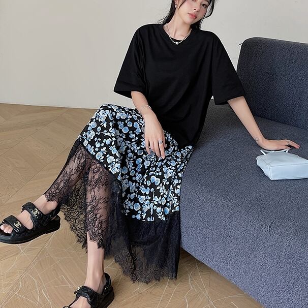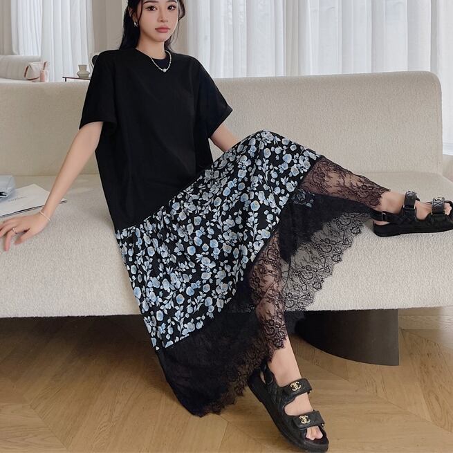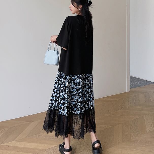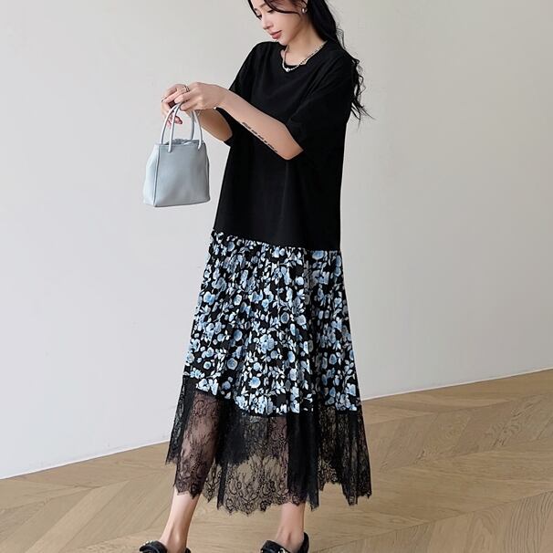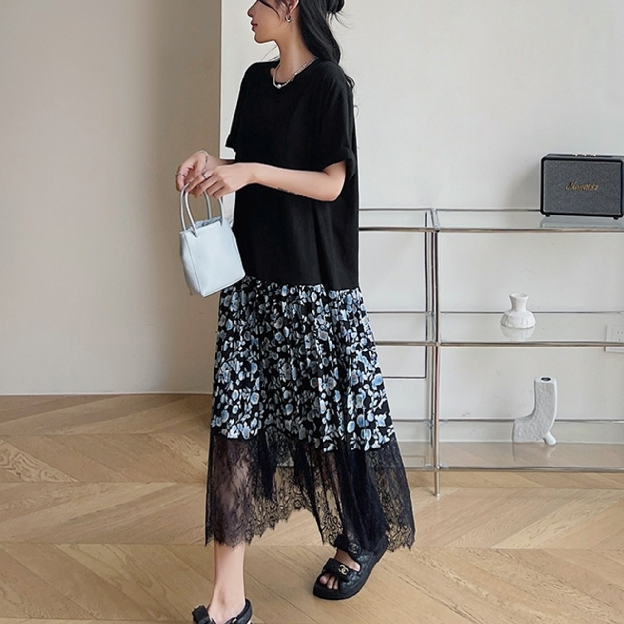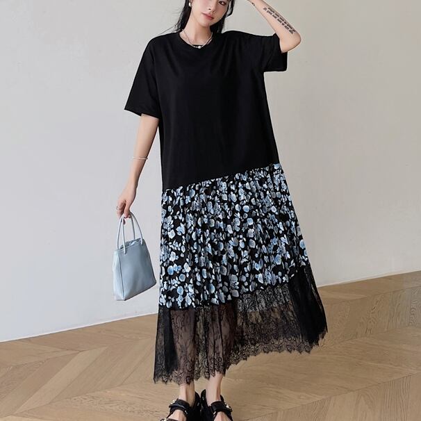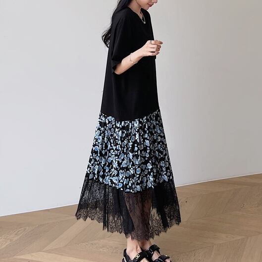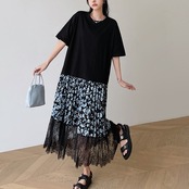 ワンピース ロングワンピース 半袖 ラウンドネック 切り替えデザイン 異素材ミックス レース 透け感 揺れる かわいい 大人可愛い きれいめ シンプル 上品 おしゃれ レトロ カジュアル こなれ感 個性的 役級存在感 抜け感 春 夏 ベーシック ナチュラル エレガント 女性用 レディース ママ マタニティ OL 通勤 オフィス 学生 通学 デート お出かけ お泊まり 女子会 旅行 休日 カフェ ショッピング コンパ 普段使い デイリー 着回し 重ね着 脚長 L XL 2XL 3XL トレンド モテ | SPARKJOY レディースファッション