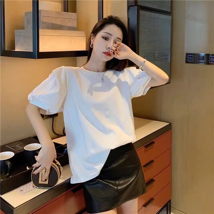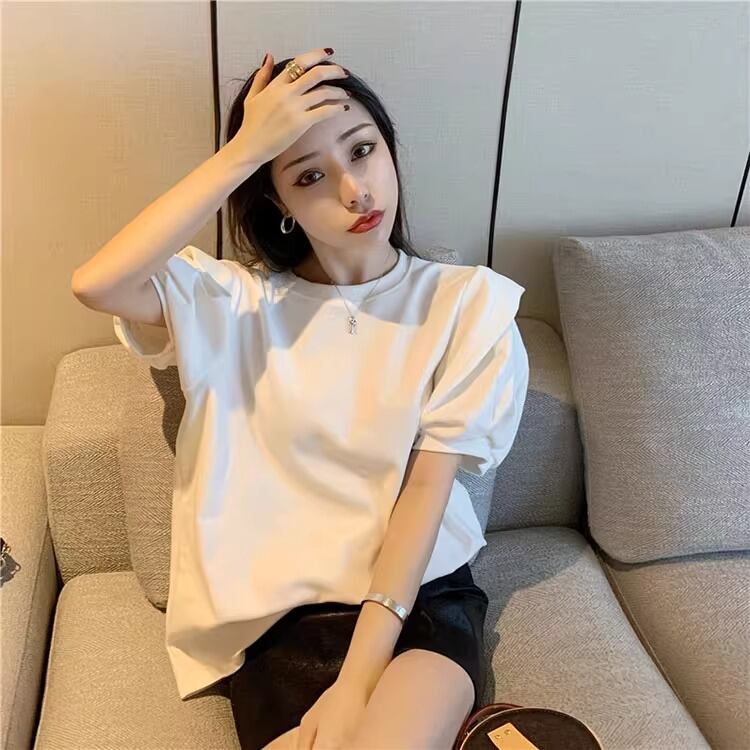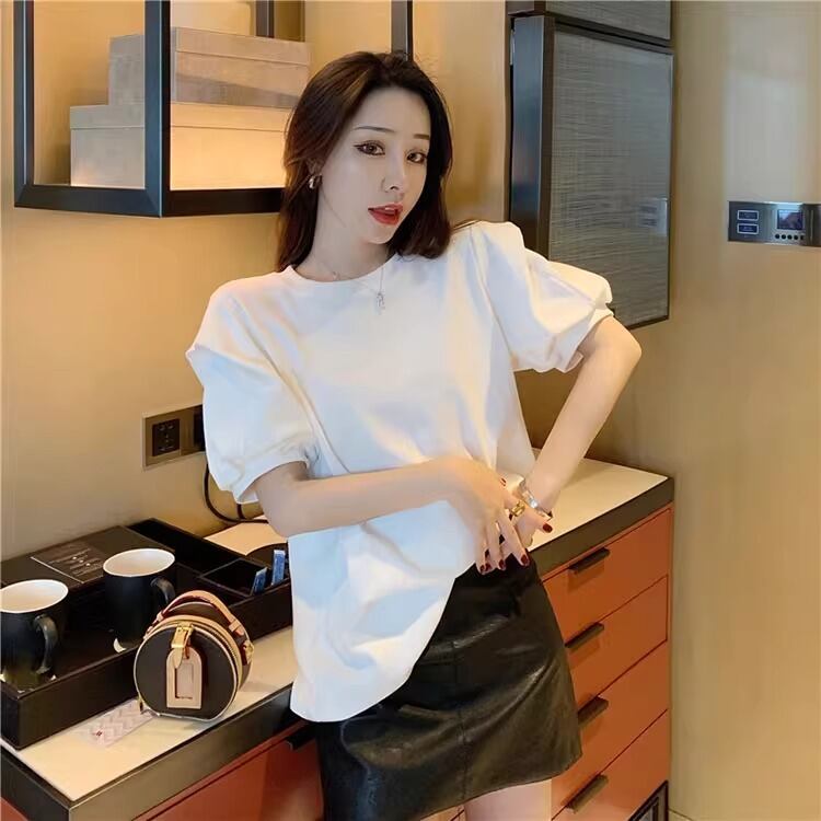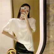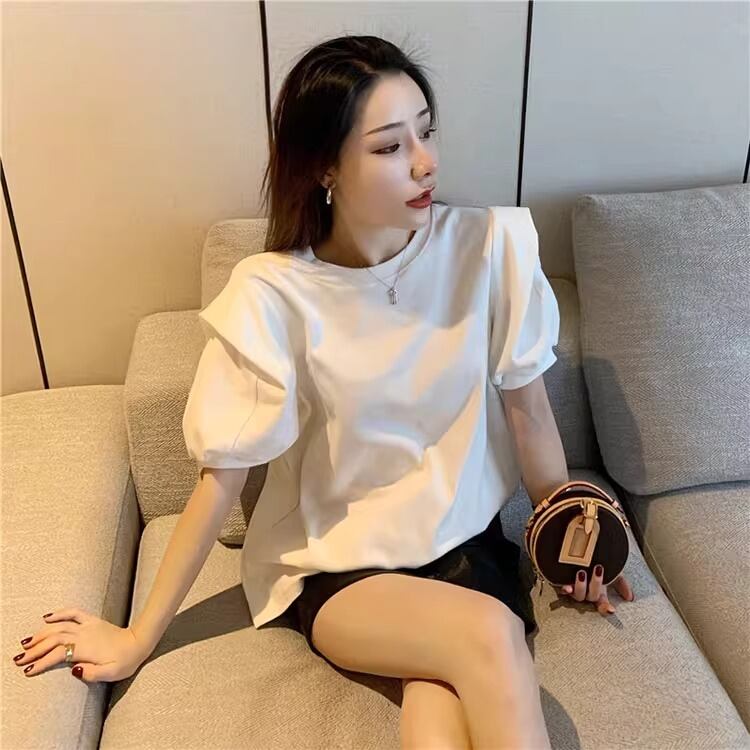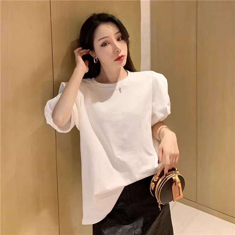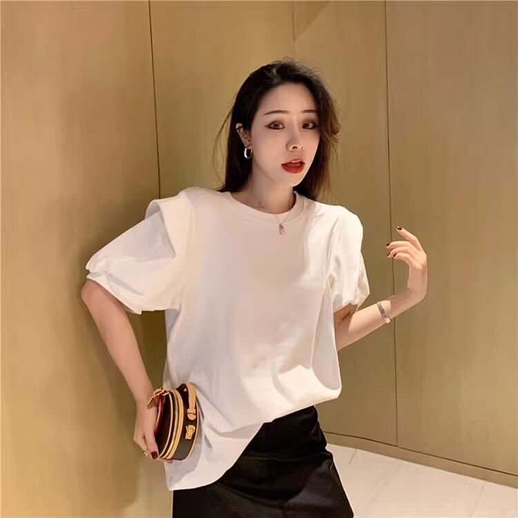 大人可愛い雰囲気を引き立てる、レディースの半袖トップスです!パフスリーブデザインが特徴で、女性らしい柔らかさを演出。ラウンドネックはシンプルながらも上品で、カジュアルからきれいめスタイルまで幅広く活躍します。