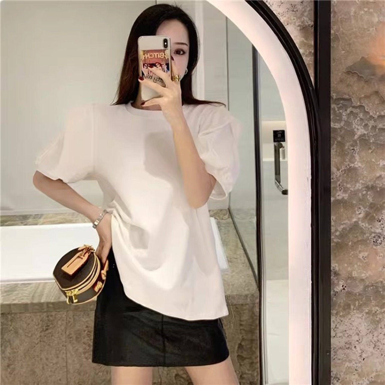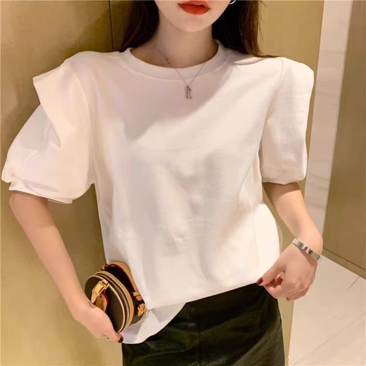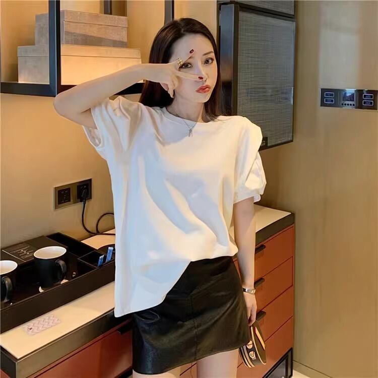大人可愛い雰囲気を引き立てる、レディースの半袖トップスです!パフスリーブデザインが特徴で、女性らしい柔らかさを演出。ラウンドネックはシンプルながらも上品で、カジュアルからきれいめスタイルまで幅広く活躍します。