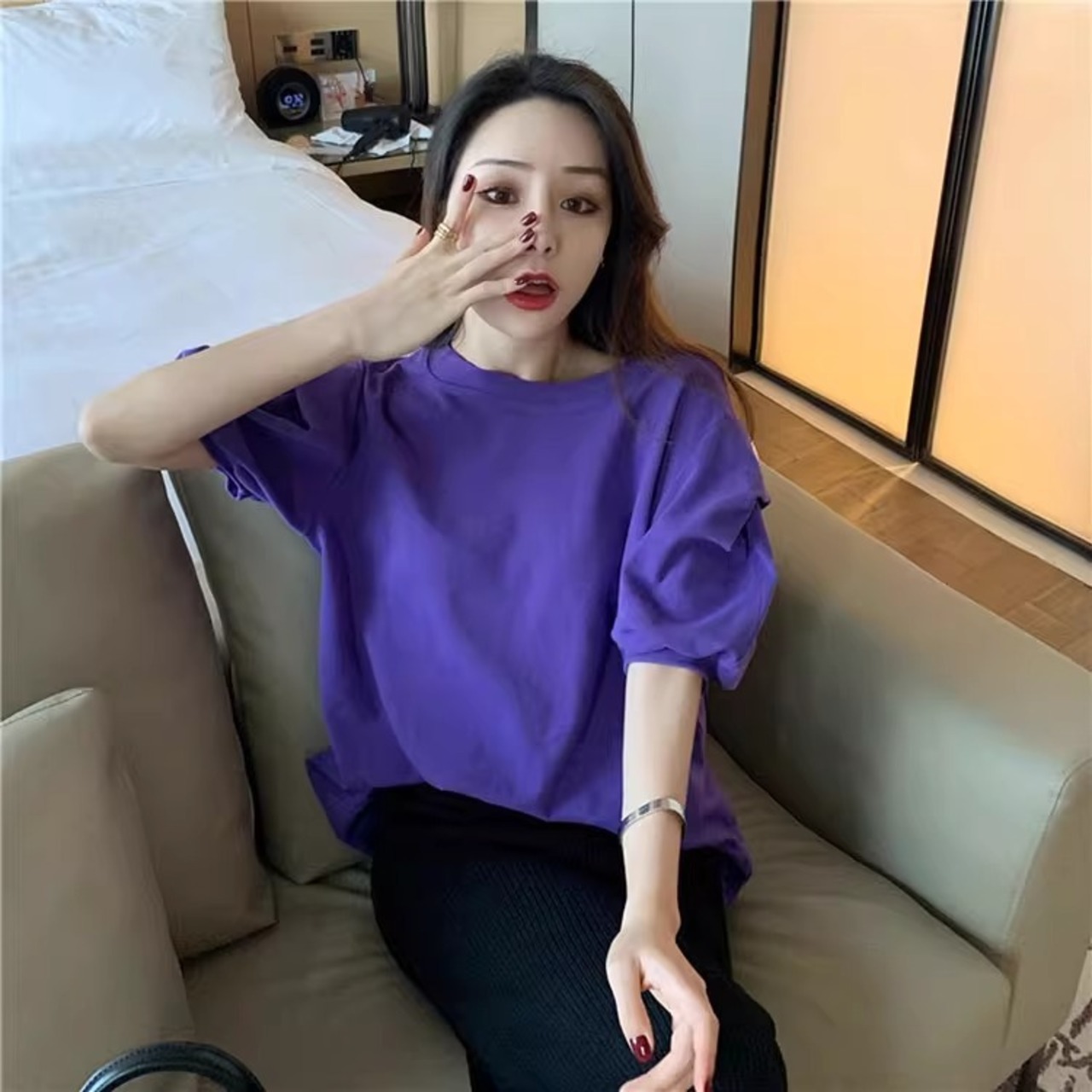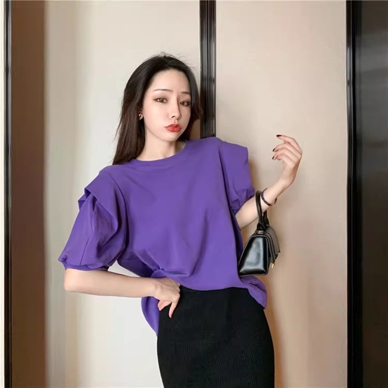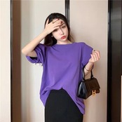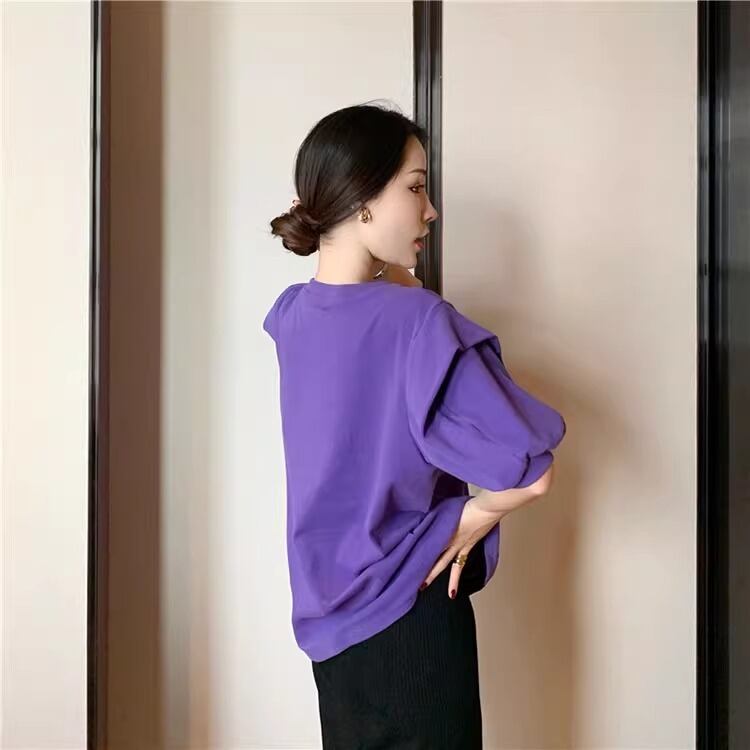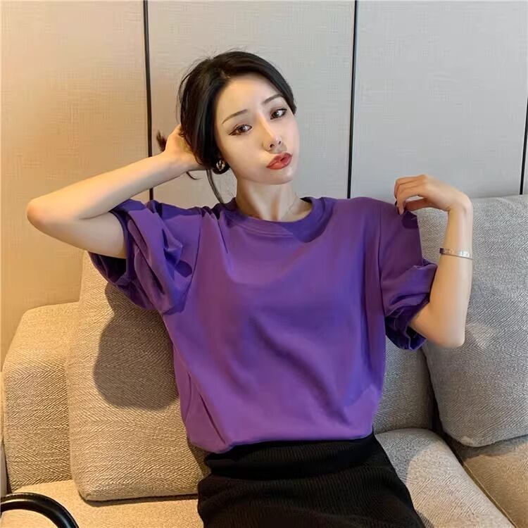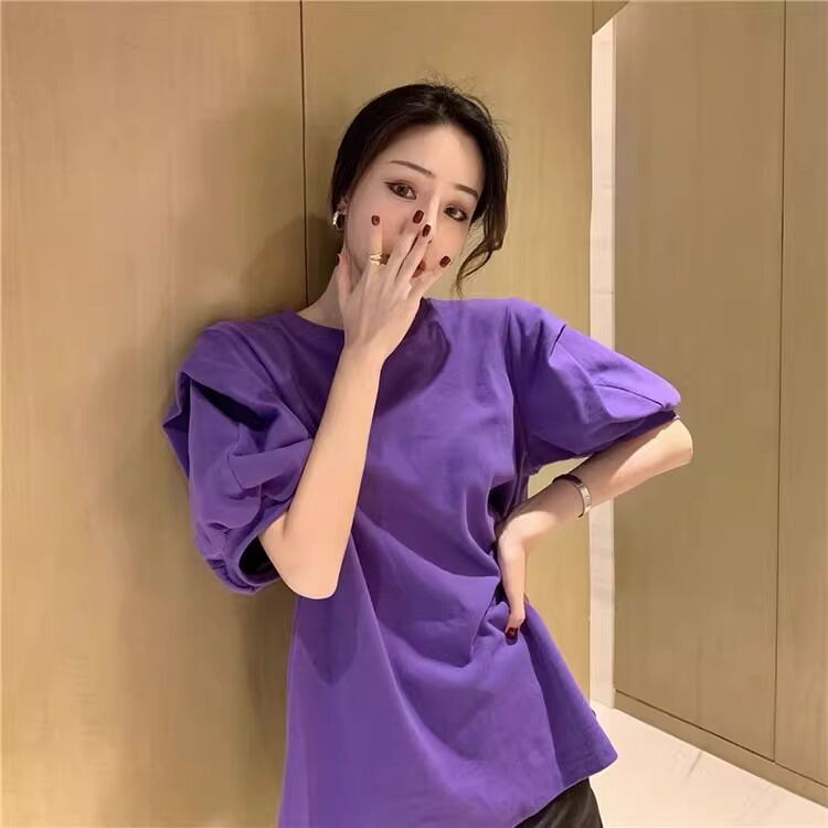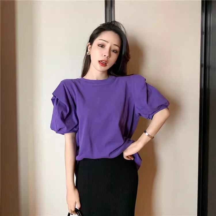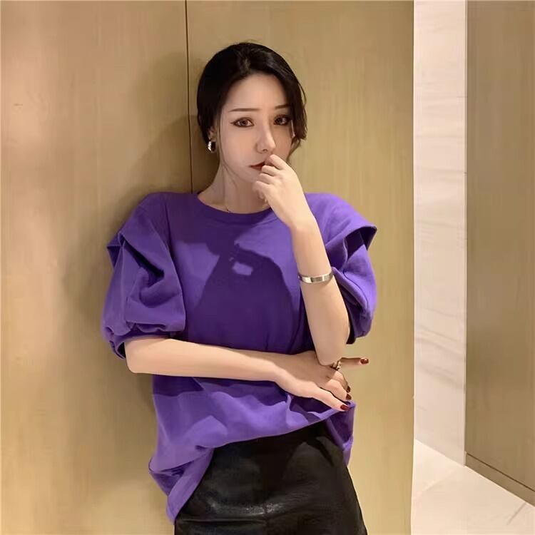 レディース トップス 半袖 パフスリーブ ラウンドネック かわいい 大人可愛い きれいめ シンプル カジュアル 上品 おしゃれ かっこいい レトロ エキゾチック こなれ感 ラフ 個性的 クール モード系 エレガント モダン 存在感 抜け感 かっちり キュート ベーシック アクティブ ロマンティック ナチュラル 無地 夏 OL デート お出かけ 旅行 休日 ホテル ショッピング カフェ コーデ 楽ちん 普段使い 着回し モテ 清楚 S M L XL 2XL ホワイト ベーシックカラー 大人カラー パープル | SPARKJOY レディースファッション
