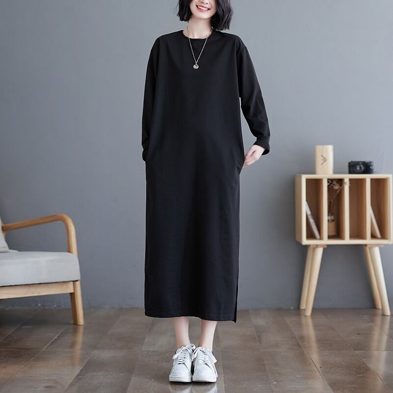 ワンピース ミモレ丈ワンピース Tシャツワンピース 長袖 クルーネック ポケット サイドスリット ミモレ丈 かわいい 大人可愛い きれいめ シンプル 上品 おしゃれ レトロ カジュアル こなれ感 個性的 役級存在感 抜け感 春 秋 ベーシック ナチュラル メンズライク 女性用 レディース ママ マタニティ OL 通勤 学生 通学 デート お出かけ お泊まり 女子会 旅行 休日 カフェ ショッピング コンパ 普段使い デイリー 着回し 重ね着 M L XL 2XL トレンド モテ ゆったり 楽ちん | SPARKJOY レディースファッション