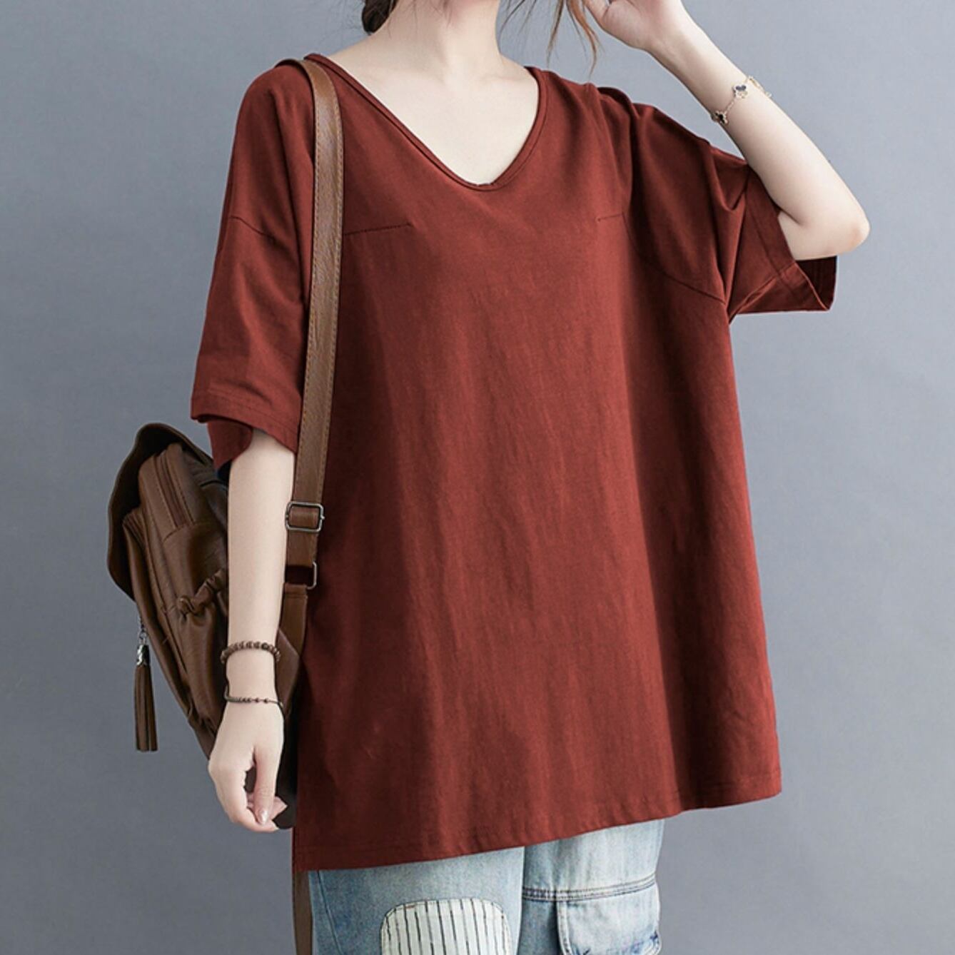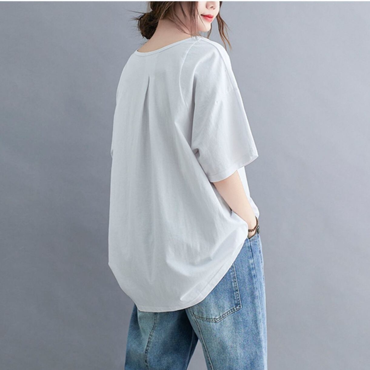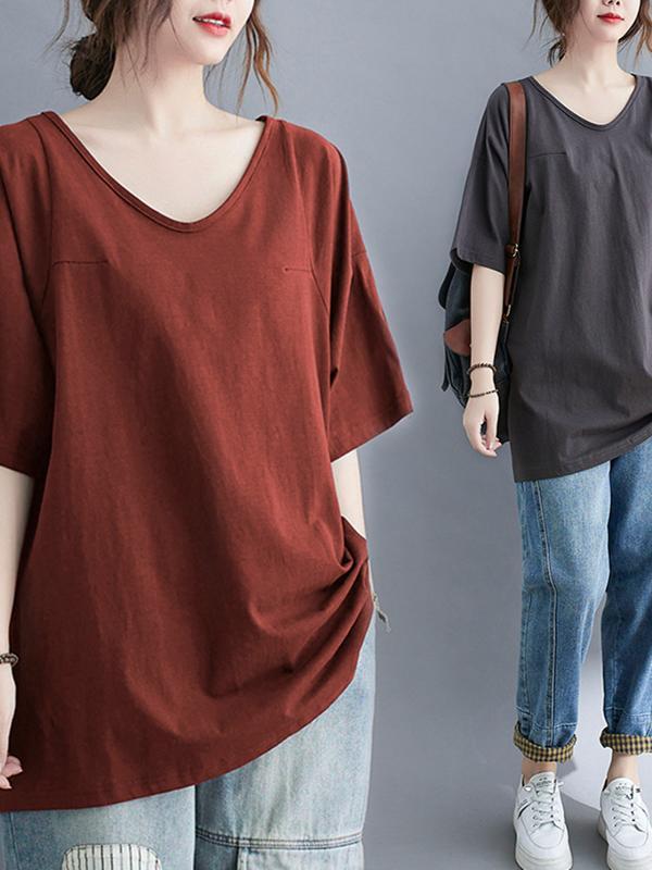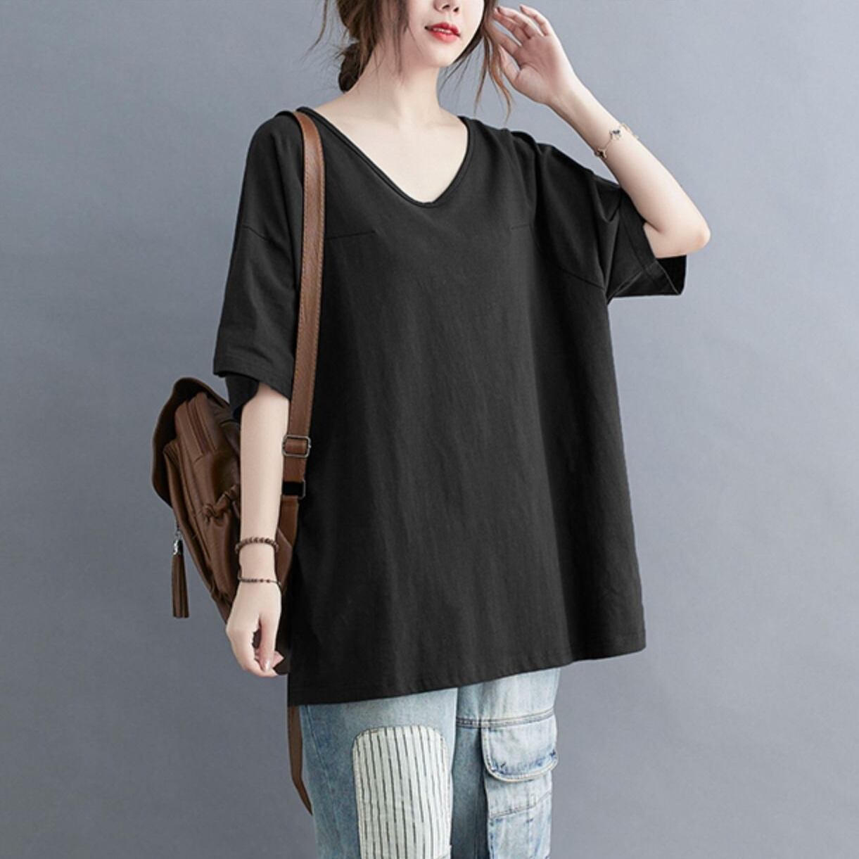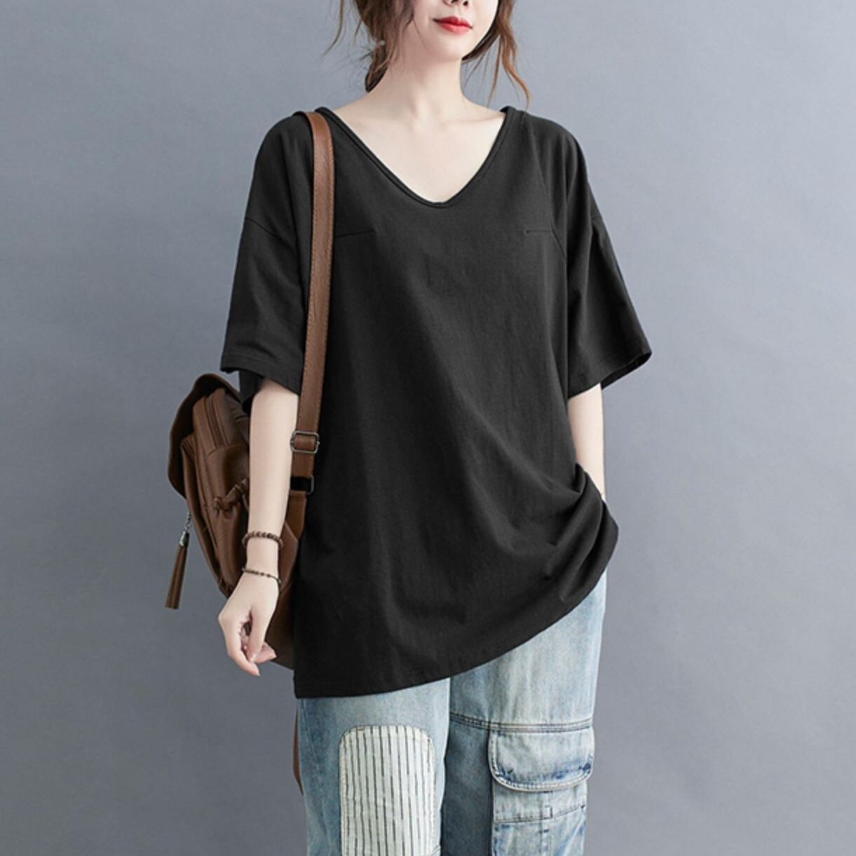 トップス カットソー 半袖 Vネック プルオーバー ショート丈 かわいい 可愛い 大人可愛い きれいめ シンプル 上品 レトロ おしゃれ かっこいい カジュアル レトロ こなれ感 個性的 主役級 存在感 抜け感 春 夏 ベーシック ナチュラル クール メンズライク 無地 女性用 レディース ママ OL 通勤 オフィス 学生 通学 デート お出かけ お泊まり 女子会 旅行 休日 アウトドア カフェ ショッピング コンパ 普段使い デイリー 着回し 重ね着 ワンサイズ トレンド モテ カラーバリエーション | SPARKJOY レディースファッション