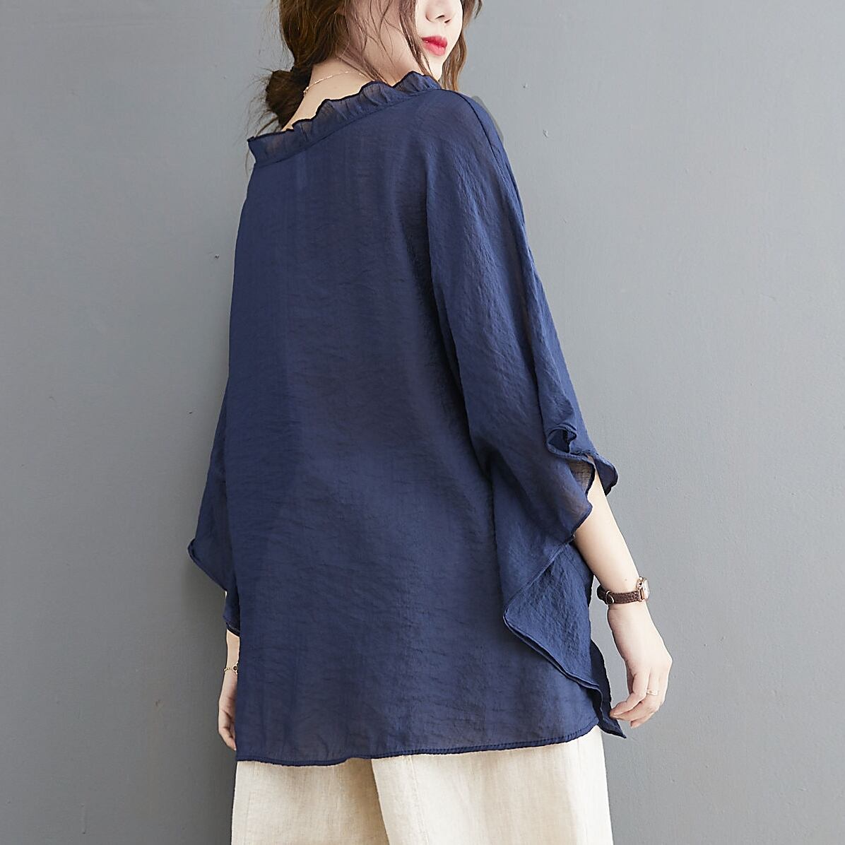 こちらのブラウスは、7分袖とVネックのデザインが女性らしさを引き立てる一着です。