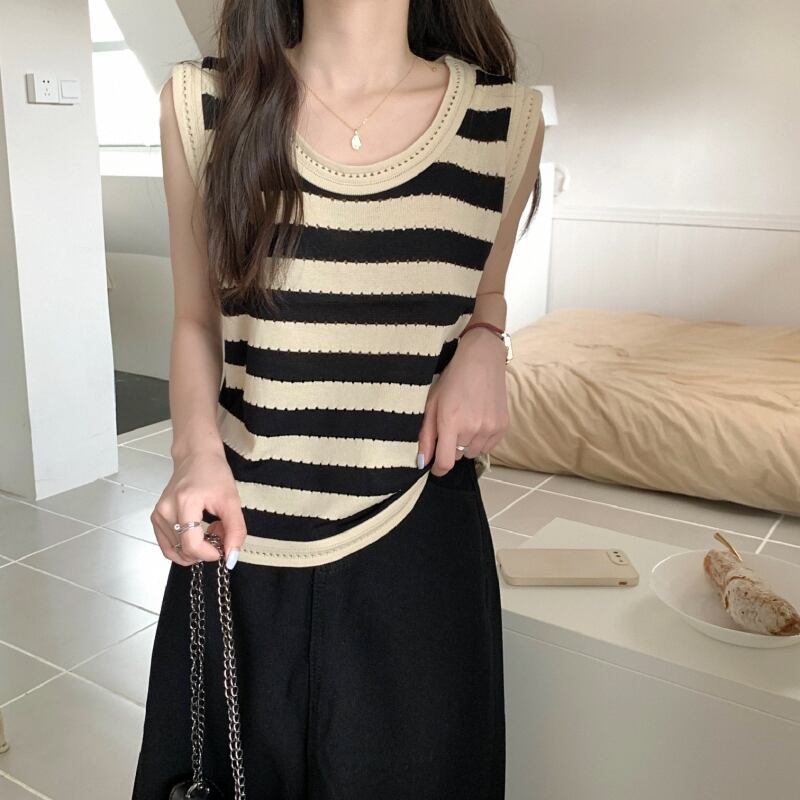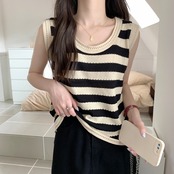 トップス タンクトップ ラウンドネック プルオーバー ミディアム丈 ニット かわいい 可愛い 大人可愛い きれいめ シンプル 上品 レトロ おしゃれ かっこいい カジュアル レトロ こなれ感 個性的 主役級 存在感 抜け感 春 夏 ベーシック ナチュラル キュート ボーダー柄 女性用 レディース ママ OL 通勤 オフィス 学生 通学 デート お出かけ お泊まり 女子会 旅行 休日 アウトドア カフェ ショッピング コンパ 普段使い デイリー 着回し 重ね着 ワンサイズ トレンド モテ ワンカラー | SPARKJOY レディースファッション