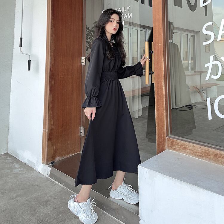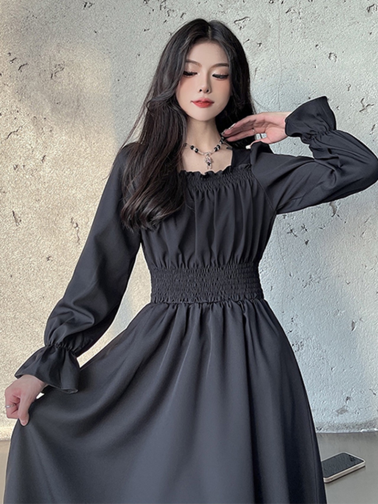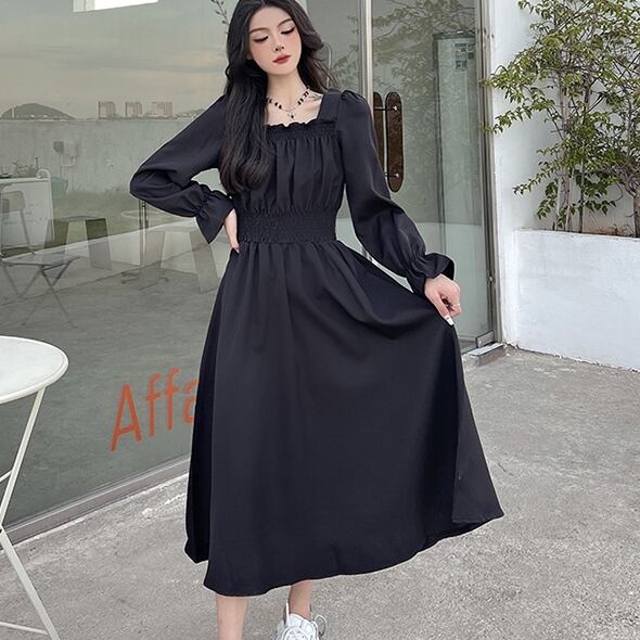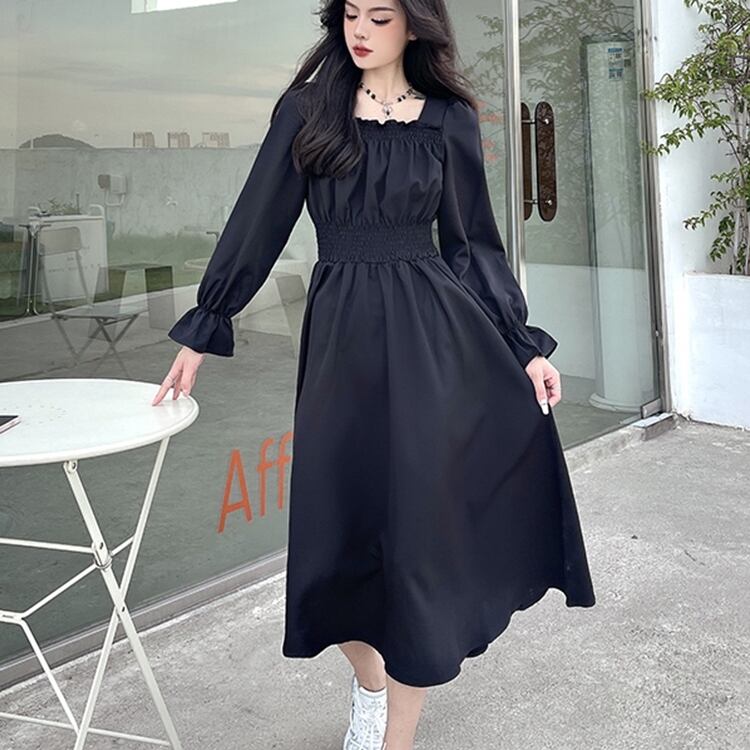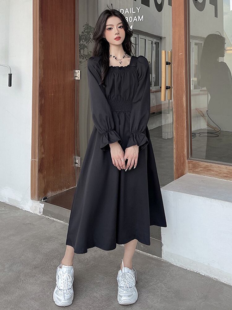 ワンピース ミモレ丈ワンピース 長袖 ベルスリーブ スクエアネック ウエストゴム フレアスカート かわいい 大人可愛い きれいめ シンプル 上品 おしゃれ レトロ カジュアル こなれ感 個性的 役級存在感 抜け感 春 秋 ベーシック ナチュラル フェミニン ガーリー 無地 女性用 レディース ママ OL 通勤 オフィス 学生 通学 デート お出かけ お泊まり 女子会 旅行 休日 カフェ ショッピング コンパ 普段使い デイリー 着回し 重ね着 脚長 L XL 2XL 3XL 4XL トレンド モテ | SPARKJOY レディースファッション
