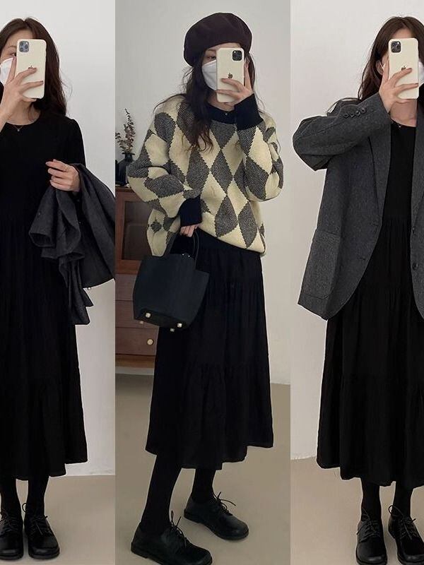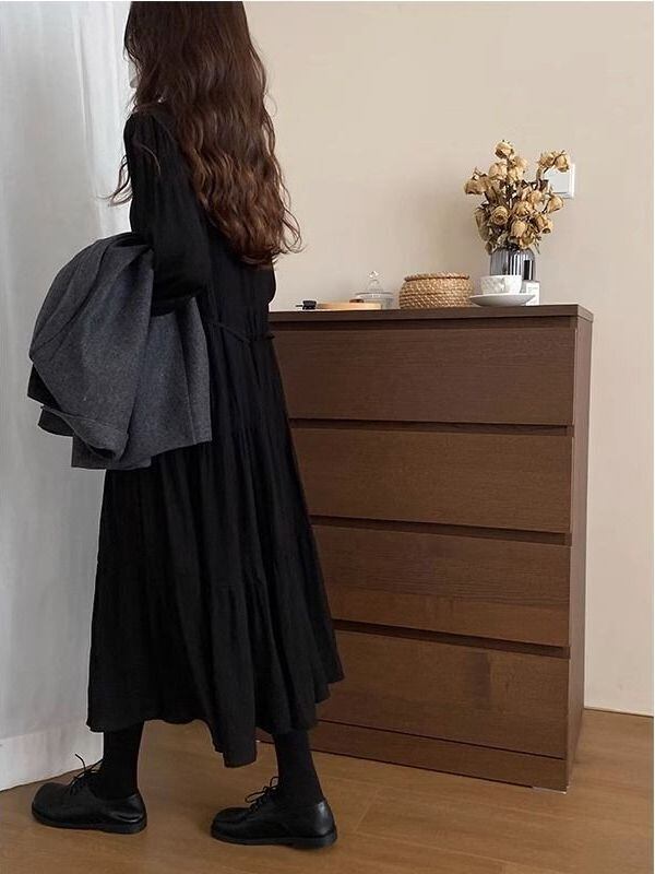 ワンピース ミモレ丈ワンピース 長袖 ラウンドネック ウエストマーク フレアスカート ミモレ丈 かわいい 大人可愛い きれいめ シンプル 上品 おしゃれ レトロ カジュアル こなれ感 個性的 役級存在感 抜け感 春 秋 ベーシック ナチュラル クール フォーマル 無地 女性用 レディース ママ OL 通勤 オフィス 学生 通学 デート お出かけ お泊まり 女子会 旅行 休日 カフェ ショッピング コンパ 普段使い デイリー 着回し 重ね着 脚長 M L XL 2XL 3XL 4XL トレンド モテ | SPARKJOY レディースファッション