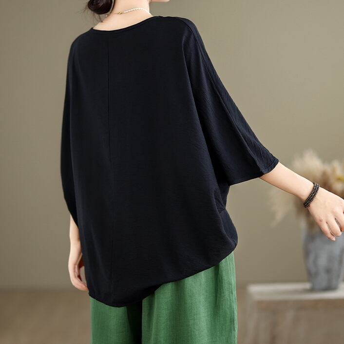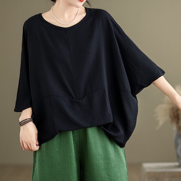 トップス カットソー 5分袖 ラウンドネック ドルマンスリーブ プルオーバー ミディアム丈 かわいい 可愛い 大人可愛い きれいめ シンプル 上品 レトロ おしゃれ かっこいい カジュアル レトロ こなれ感 個性的 主役級 存在感 抜け感 春 夏 ベーシック ナチュラル クール 無地 女性用 レディース ママ OL 通勤 オフィス 学生 通学 デート お出かけ お泊まり 女子会 旅行 休日 アウトドア カフェ ショッピング コンパ 普段使い デイリー 着回し 重ね着 ワンサイズ トレンド モテ ゆったり | SPARKJOY レディースファッション