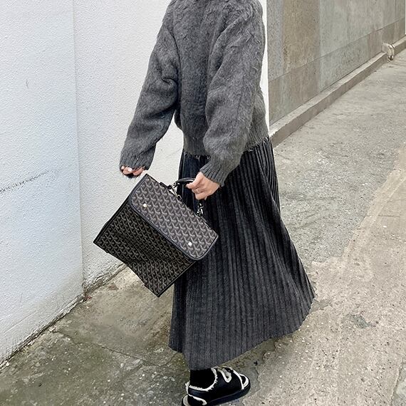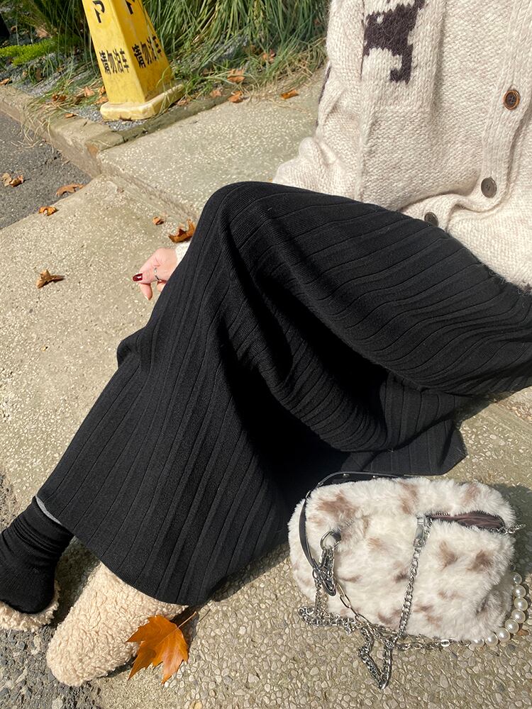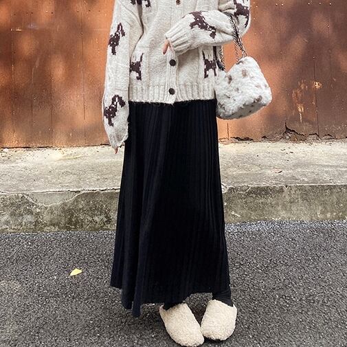 ボトムス スカート ロングスカート ニットスカート プリーツ ハイウエスト セミフレア ロング丈 かわいい 可愛い 大人可愛い きれいめ シンプル 上品 レトロ おしゃれ かっこいい カジュアル こなれ感 個性的 主役級 存在感 抜け感 秋 冬 ベーシック ナチュラル クール 無地 女性用 レディース ママ OL 通勤 オフィス 学生 通学 デート お出かけ お泊まり 女子会 旅行 休日 カフェ ショッピング イベント コンパ 普段使い デイリー 着回し 脚長 S M L XL 定番アイテム モテ | SPARKJOY レディースファッション