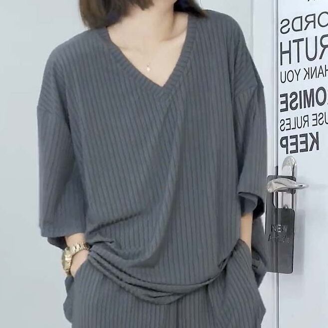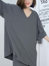 トップス カットソー 5分袖 Vネック プルオーバー ミディアム丈 かわいい 可愛い 大人可愛い きれいめ シンプル 上品 レトロ おしゃれ かっこいい カジュアル レトロ こなれ感 個性的 主役級 存在感 ラフ ルーズ 抜け感 春 夏 ベーシック ナチュラル メンズライク 無地 女性用 レディース ママ OL 通勤 オフィス 学生 通学 デート お出かけ お泊まり 女子会 旅行 休日 アウトドア カフェ ショッピング コンパ 普段使い デイリー 着回し 重ね着 L XL 2XL 3XL 4XL | SPARKJOY レディースファッション