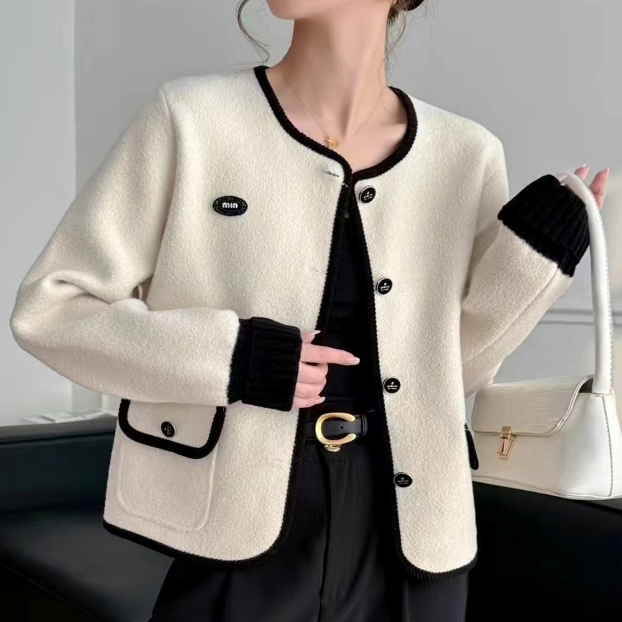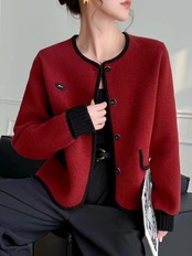 アウター ジャケット 長袖 クルーネック 前開き ボタン ショート丈 ポケット かわいい 可愛い 大人可愛い きれいめ シンプル 上品 レトロ おしゃれ かっこいい カジュアル こなれ感 個性的 主役級 存在感 抜け感 秋 冬 ベーシック ナチュラル フェミニン キュート 無地 バイカラー 女性用 レディース ママ OL 通勤 学生 通学 デート お出かけ お泊まり 女子会 旅行 休日 カフェ ショッピング イベント コンパ 普段使い デイリー 着回し S M L XL 2XL トレンド モテ 暖かい | SPARKJOY レディースファッション