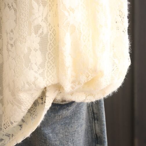 透け感が魅力のこのブラウスは、シンプルながらも上品で存在感があります。