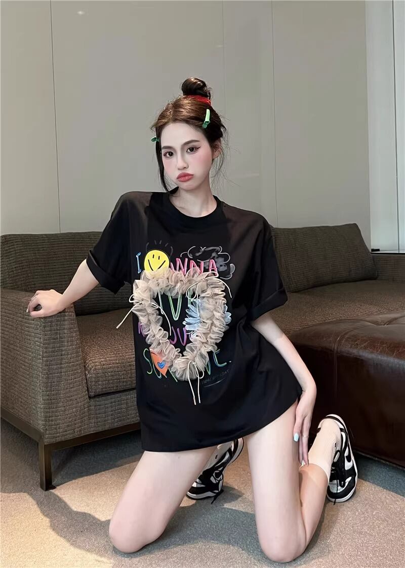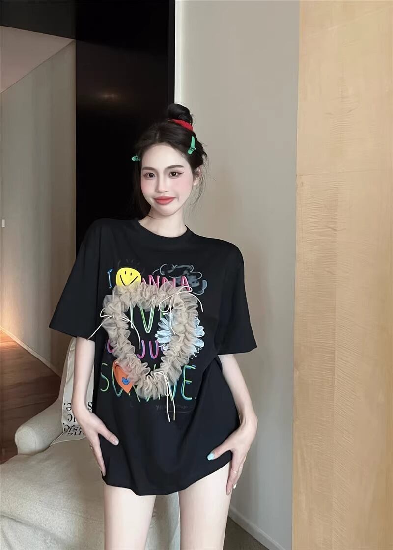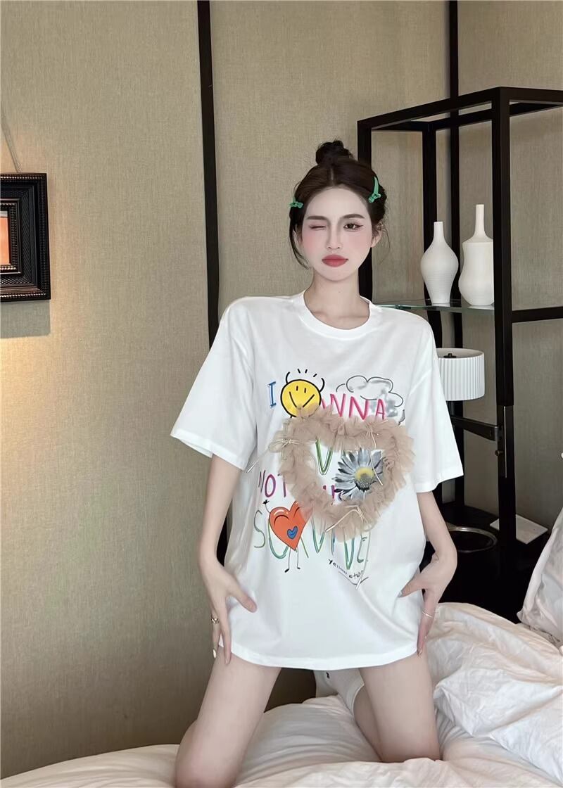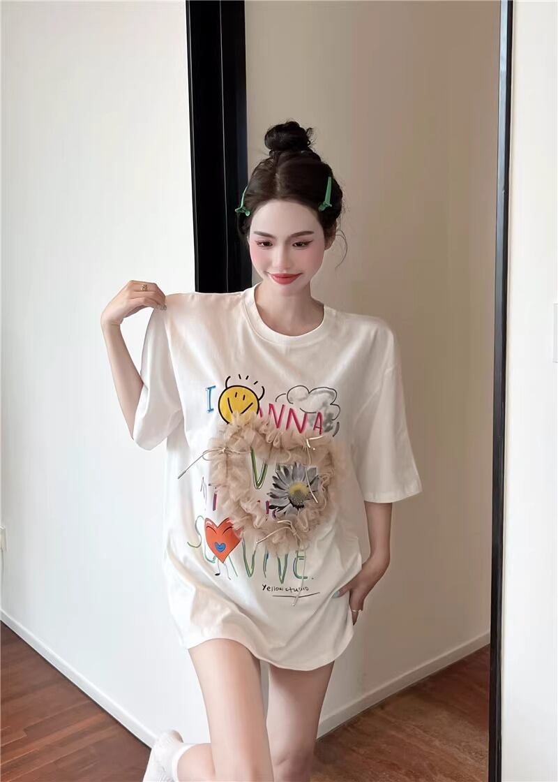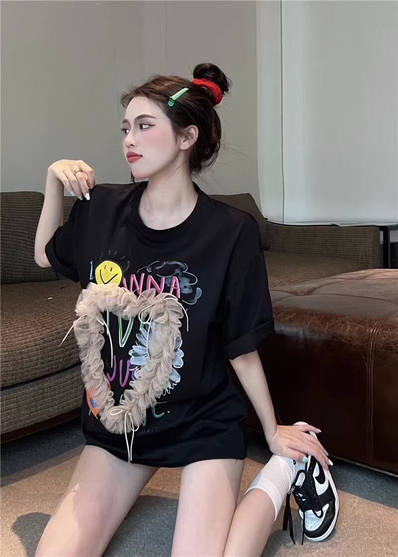 レディース トップス Tシャツ ミモレ 半袖 Uネック ワイド ストレート オーバーサイズ ラップ ストリート チュール リボン 異国風 ヴィンテージ アメカジ 薄手 カジュアル おしゃれ かっこいい こなれ感 ラフ メンズライク ガーリー ルーズ 個性的 主役級 キュート ゴシック 都会的 アメリカン プリント キャラクター 夏 学生 学校 デート お出かけ お泊まり アウトドア キャンプ 旅行 プール ビーチ ジム 公園 女子会 休日 バカンス コンサート ライブ カフェ フェス お揃い 韓国 コー | SPARKJOY レディースファッション