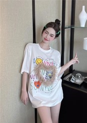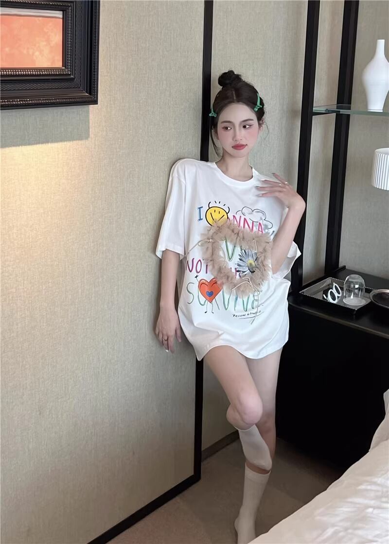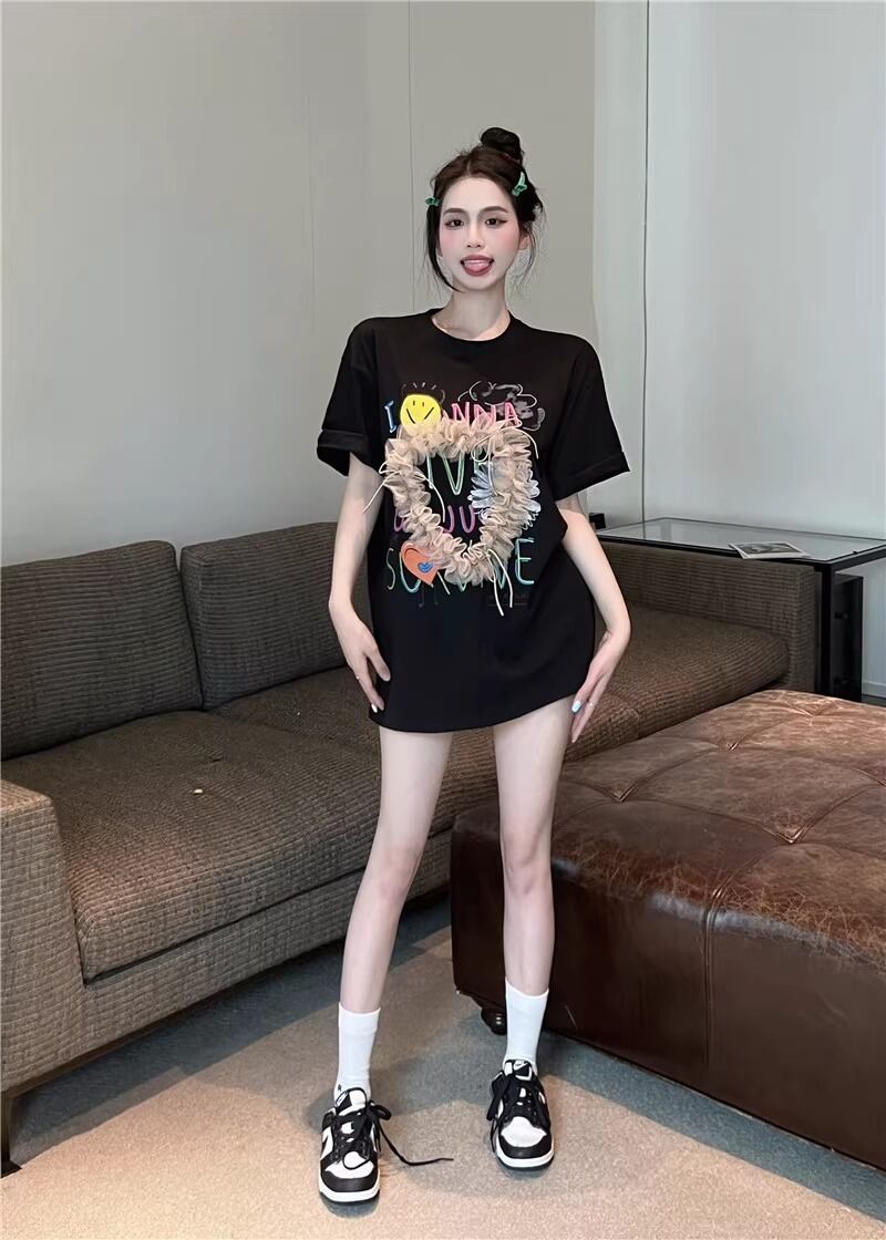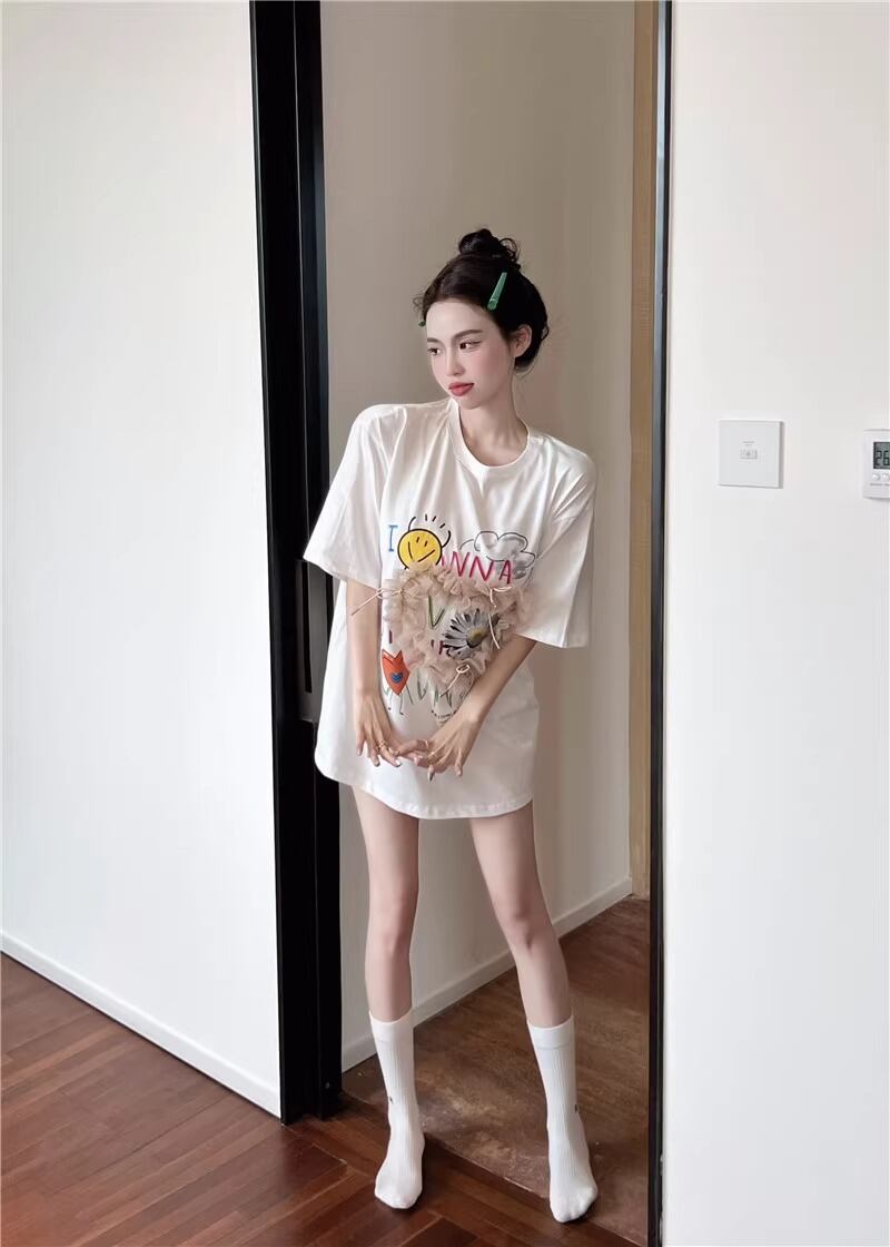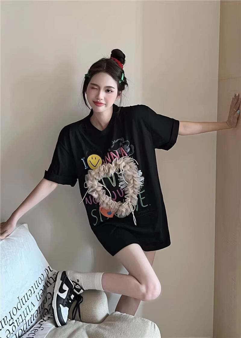 レディース トップス Tシャツ ミモレ 半袖 Uネック ワイド ストレート オーバーサイズ ラップ ストリート チュール リボン 異国風 ヴィンテージ アメカジ 薄手 カジュアル おしゃれ かっこいい こなれ感 ラフ メンズライク ガーリー ルーズ 個性的 主役級 キュート ゴシック 都会的 アメリカン プリント キャラクター 夏 学生 学校 デート お出かけ お泊まり アウトドア キャンプ 旅行 プール ビーチ ジム 公園 女子会 休日 バカンス コンサート ライブ カフェ フェス お揃い 韓国 コー | SPARKJOY レディースファッション