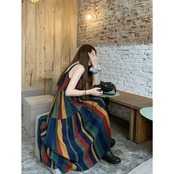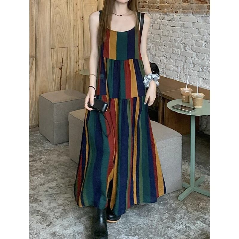 レディース スカート ワンピース キャミソール フレア ドレス カラースカート フレアスカート ロングスカート ロング マキシ フルレングス 袖なし ラウンドネック Aライン 背中開き 異国風 配色 薄手 かわいい 大人可愛い カジュアル おしゃれ レトロ アジアン エスニック こなれ感 ラフ ガーリー 個性的 抜け感 ヴィンテージ キュート アメリカン ストライプ 夏 ママ マタニティ デート お出かけ イベント リゾート 旅行 海 プール ビーチ 女子会 休日 バカンス ショッピング カフェ フェス | SPARKJOY レディースファッション