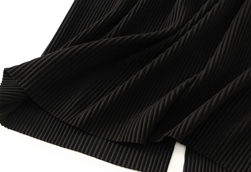 ハイウエストデザインでスタイルアップを叶え、ウエストゴムで快適な着心地を実現しています。