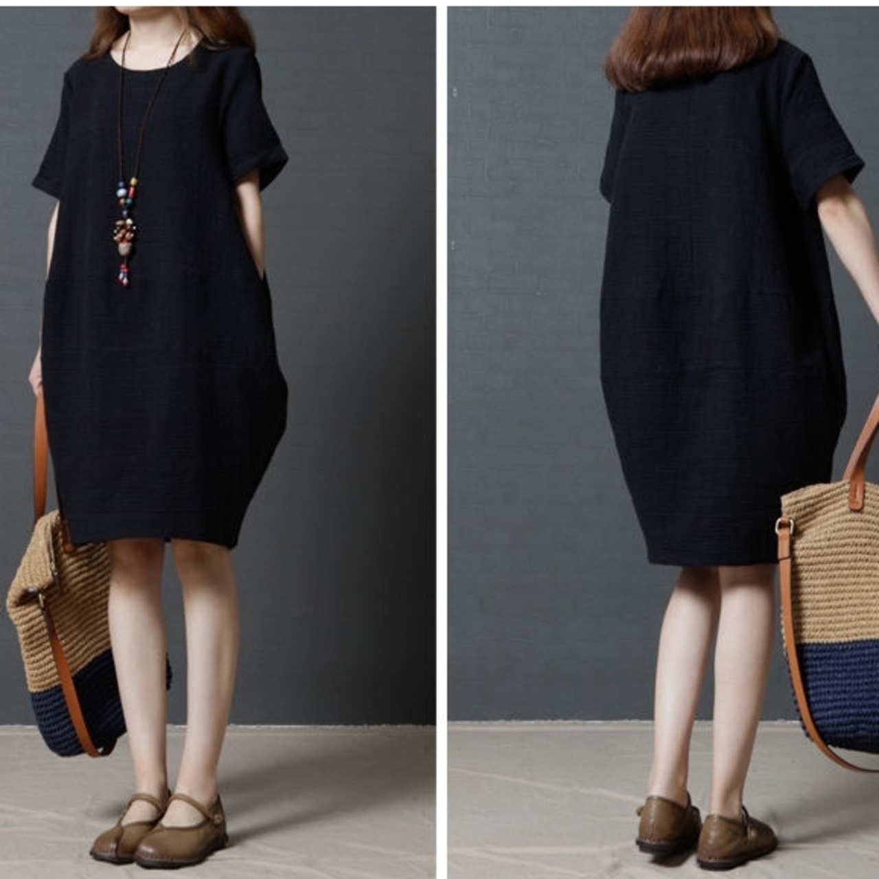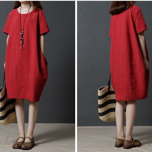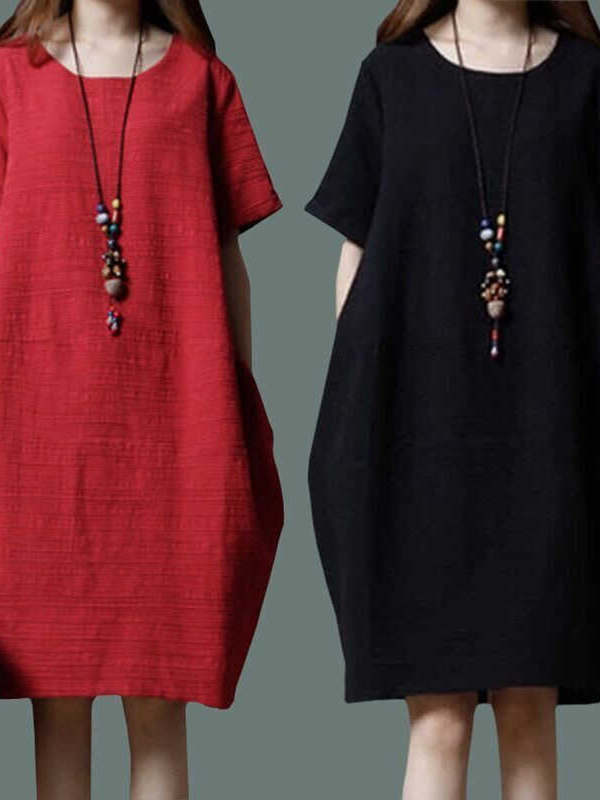 ワンピース ミディアム丈ワンピース 半袖 ラウンドネック ポケット ミディアム丈 膝丈 かわいい 可愛い 大人可愛い きれいめ シンプル 上品 おしゃれ レトロ カジュアル こなれ感 個性的 役級存在感 抜け感 春 夏 ベーシック ナチュラル キュート 無地 女性用 レディース ママ OL 通勤 オフィス 学生 通学 デート お出かけ お泊まり 女子会 旅行 休日 カフェ ショッピング コンパ 普段使い デイリー イベント 着回し 重ね着 脚長 美脚 M L XL 2XL 3XL トレンド モテ | SPARKJOY レディースファッション