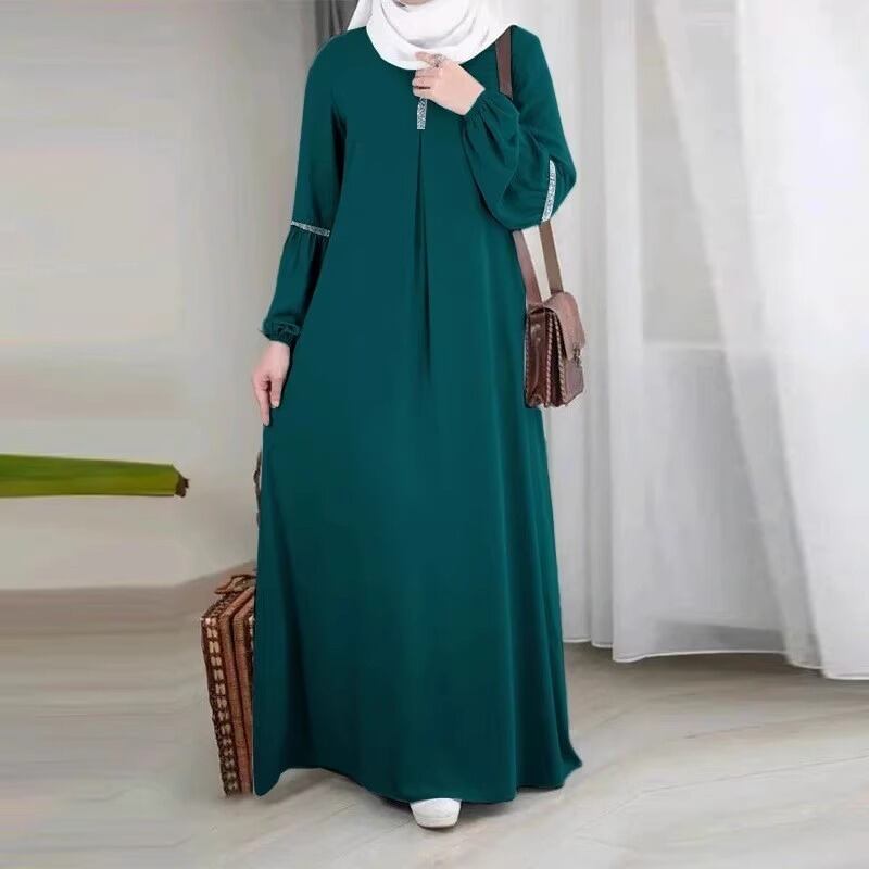 大人可愛い洗練されたデザインが魅力のレディースワンピースドレスです。ロングアンクル丈とバルーン袖が絶妙に組み合わさり、優雅さを引き立てます!ラウンドネックのシンプルなデザインは、コーディネートを選ばず、カジュアルなお出かけから特別なイベントまで幅広くご活用いただけます。