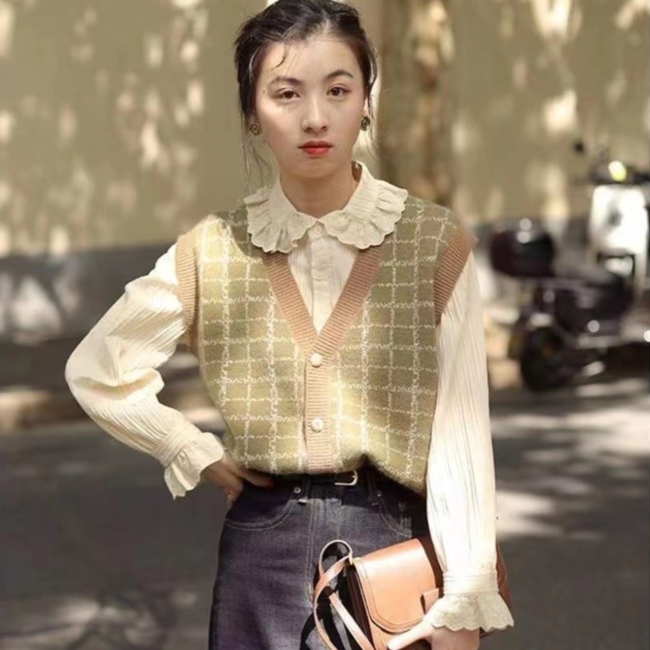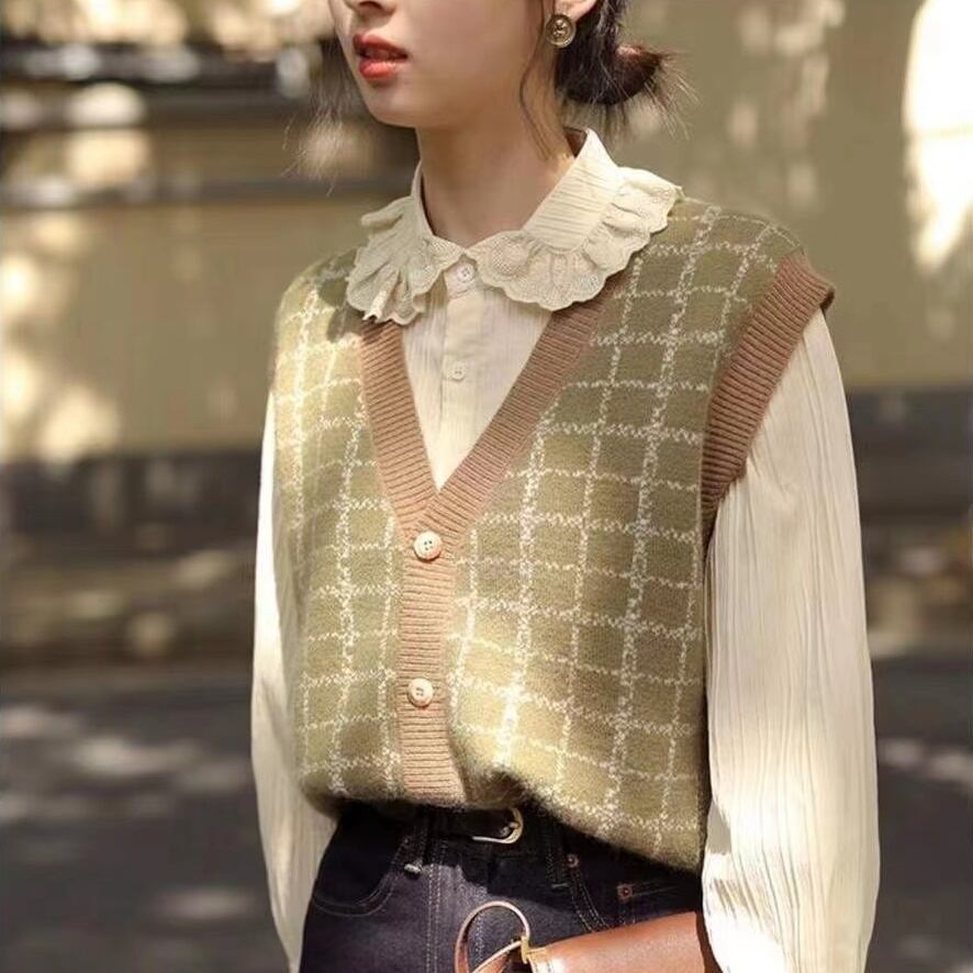 ニットベスト Vネック チェック柄 秋 冬 レディース トップス ニット 前開き スリム 細身 フェミニン ボタン かわいい 大人可愛い きれいめ シンプル カジュアル おしゃれ こなれ感 ラフ ルーズ 個性的 とろみ感 抜け感 キュート カレッジ風 学生風 ナチュラル 学生 学校 通学 デート お出かけ 旅行 女子会 休日 ショッピング コンサート ライブ カフェ 韓国 オルチャン 楽ちん 暖かい 普段使い 着回し モテ インスタ映え 定番 S M L XL オレンジ グリーン 大人カラー 秋カラー | SPARKJOY レディースファッション
