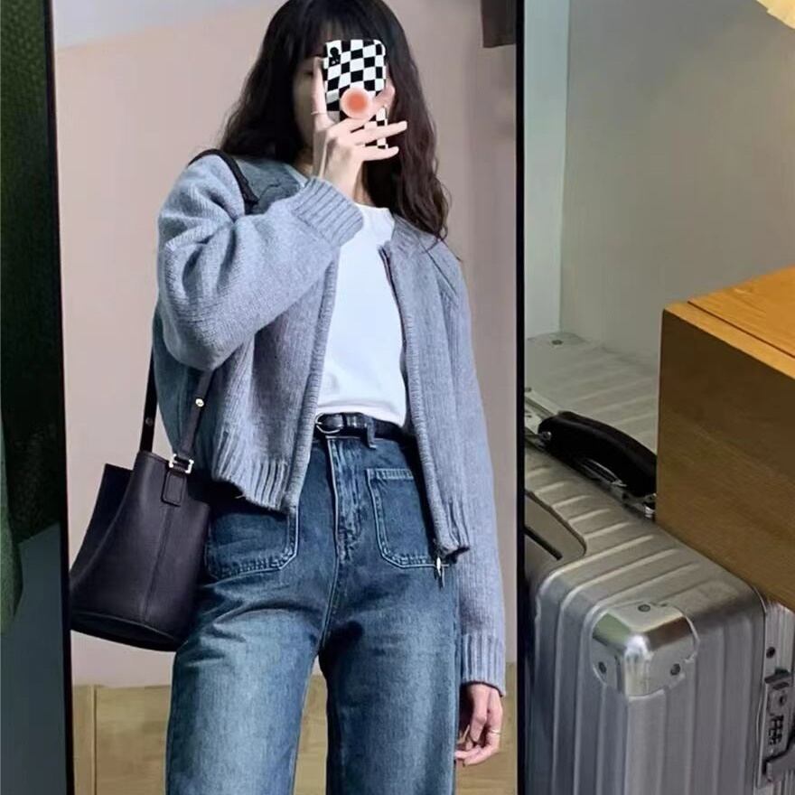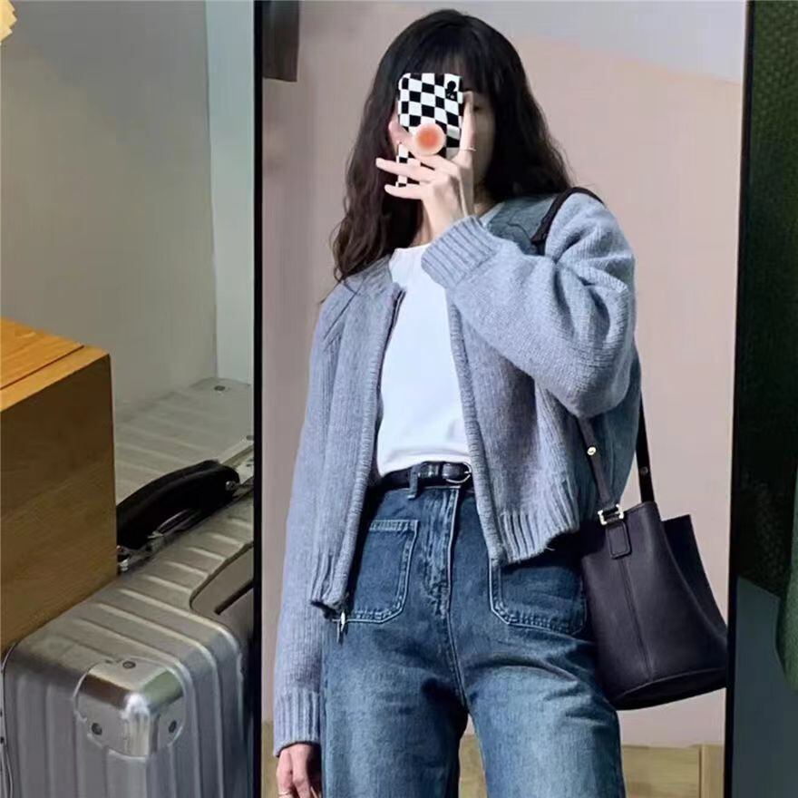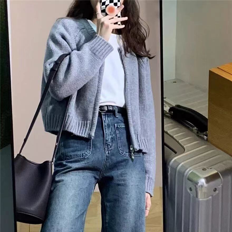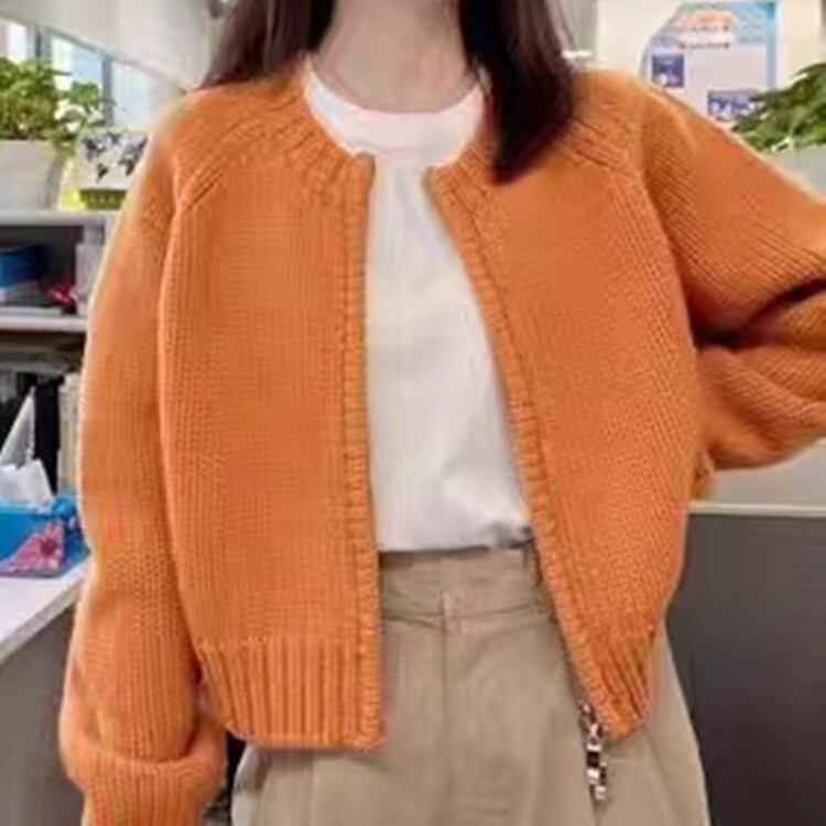 ニットカーディガン クロップド丈 ジッパー 秋 冬 長袖 レディース トップス ニット セーター カーディガン フェミニン ファスナー 前開き かわいい シンプル カジュアル おしゃれ こなれ感 ラフ マニッシュ ガーリー 抜け感 キュート 学生風 ベーシック ナチュラル デート お出かけ アウトドア 旅行 女子会 休日 ショッピング ライブ カフェ 重ね着 韓国 オルチャン コーデ 楽ちん 暖かい プチプラ 普段使い トレンド 流行 インスタ映え 定番 S M L XL グレー オフホワイト オレンジ | SPARKJOY レディースファッション
