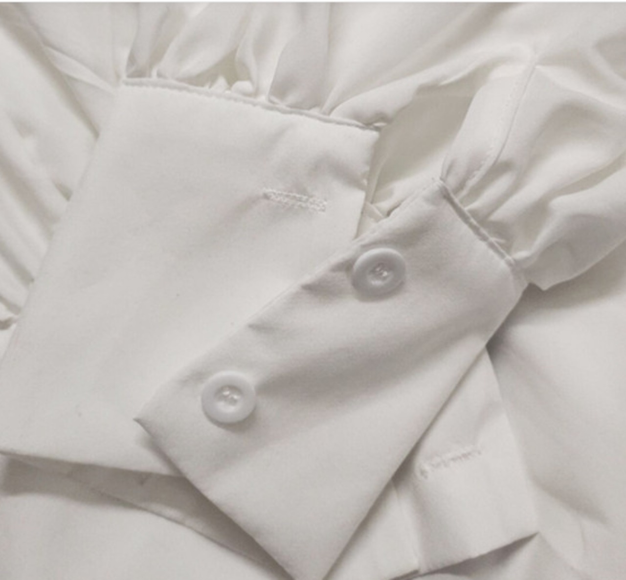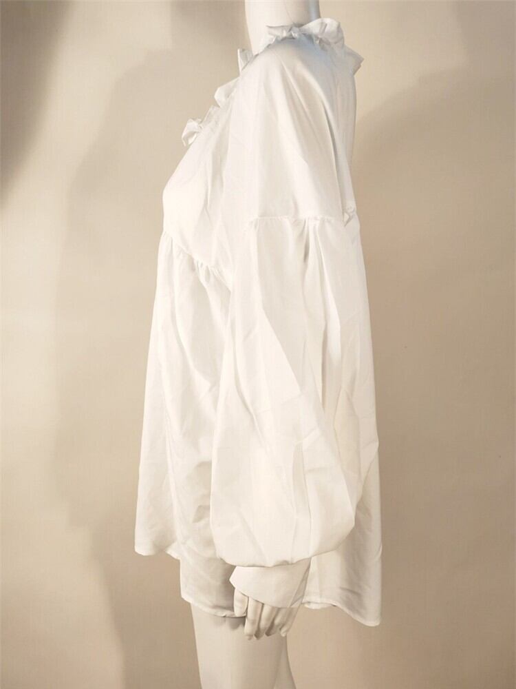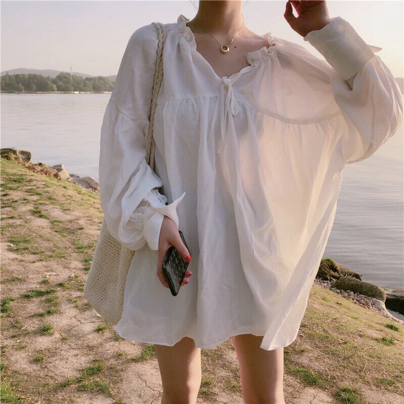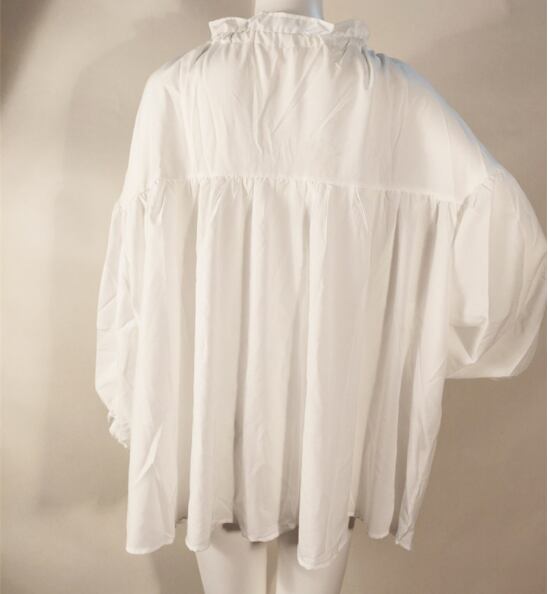 レディース トップス ブラウス チュニック ミディアム 長袖 ボリューム袖 パフスリーブ ドロップショルダー 襟付き スタンドカラー スキッパー りぼんタイ フレア Aライン オーバーサイズ フェミニン フリル 透け感 シアー かわいい 大人可愛い きれいめ シンプル カジュアル おしゃれ レトロ こなれ感 ラフ ガーリー ルーズ 抜け感 ラブリー キュート ロマンティック ナチュラル 無地 春 夏 デート お出かけ リゾート 旅行 休日 バカンス 楽ちん 体型カバー フリーサイズ ゆる ホワイト | SPARKJOY レディースファッション