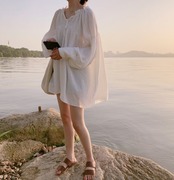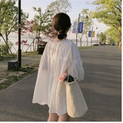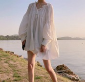 オーバーサイズ仕様で体型カバーを叶えつつ、ほのかな透け感が抜け感をプラスし、シンプルながら大人可愛い印象に。ホワイトの無地デザインは清楚でロマンティックなムードをまとい、デートや旅行、リゾートシーンにもぴったりです。