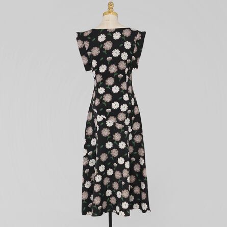 この半袖のミモレ丈ワンピースは、セミフレアシルエットとシースルーデザインが特徴で、春夏のシーズンにぴったりなスタイルを提供します。小花柄がガーリーでキュートな印象を与えつつ、シンプルで上品な印象を演出します。デートやお出かけ、女子会やカフェでのショッピング、さらにはリゾートやバカンスシーンでも大活躍します。