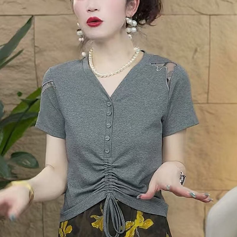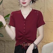 レディース トップス 半袖 Vネック タイト スリム ボタン かわいい 大人可愛い きれいめ シンプル カジュアル 上品 おしゃれ かっこいい レトロ エキゾチック こなれ感 ラフ ボーイッシュ スポーティー ガーリー 個性的 クール 抜け感 ベーシック アメリカン アクティブ ナチュラル 無地 ボーダー 夏 デート お出かけ 旅行 公園 休日 カフェ コーデ 楽ちん 普段使い モテ 清楚 XL 2XL 3XL 4XL 5XL 6XL 大きいサイズ ブラック グレー レッド ベーシックカラー 大人カラー | SPARKJOY レディースファッション