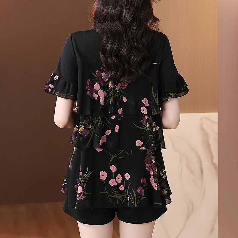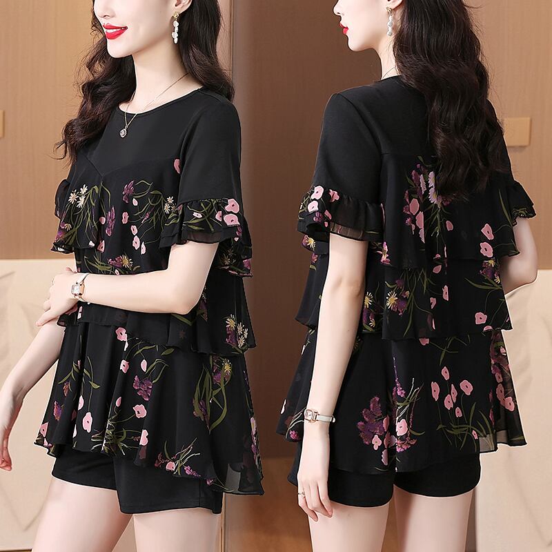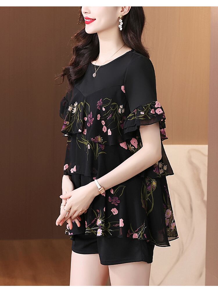 レディース トップス シャツ ブラウス ロング 半袖 フリル袖 ラウンドネック シフォン フリル かわいい 大人可愛い きれいめ シンプル カジュアル 上品 おしゃれ かっこいい レトロ アジアン エスニック エキゾチック こなれ感 ラフ 個性的 クール 無地 プリント 夏 デート お出かけ レストラン 休日 ホテル ショッピング カフェ コーデ 楽ちん 体型カバー 普段使い モテ 清楚 L XL 2XL 3XL 4XL 5XL 大きいサイズ ゆったり ゆる 黒 ブラック ベーシックカラー 大人カラー | SPARKJOY レディースファッション